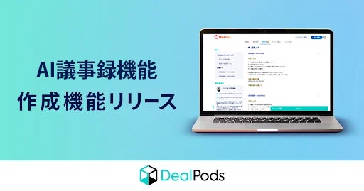 株式会社マツリカ(本社:東京都中央区、代表取締役CEO:黒佐英司)は、デジタルセールスルーム「DealPods」にAIが自動的に議事録を作成し顧客に共有できる新機能を搭載したことをお知らせいたします。