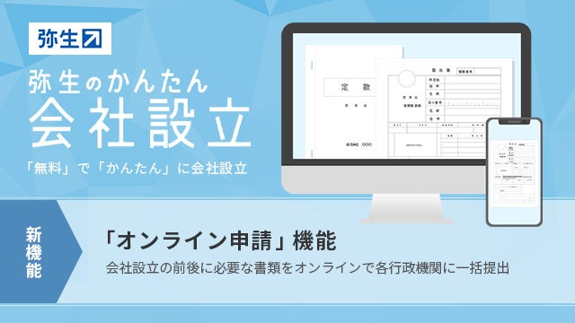 弥生株式会社(本社:東京都千代田区、代表取締役社長:岡本 浩一郎)は、当社が運営する起業支援サービス「弥生のかんたん会社設立」に「オンライン申請」機能を追加しましたので、お知らせします。