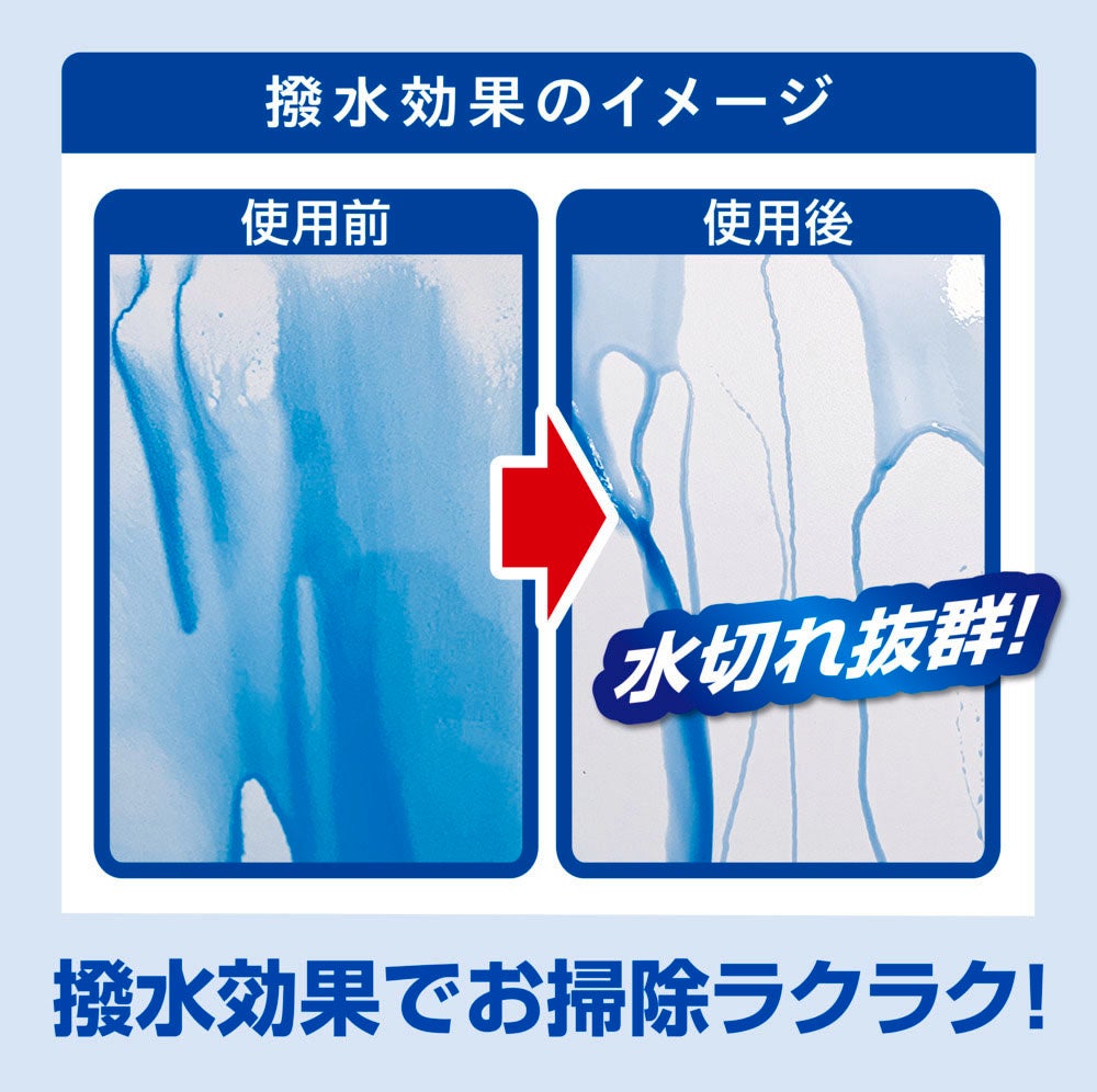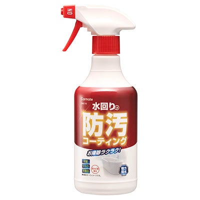 濡れた素材に対しても撥水成分を密着させて表面に被膜を形成するという、当社クルマ用コーティングの技術を応用した水回りの防汚コーティングです(2023年4月発売)。ご家庭の浴室やシンクなどの水回りにスプレーし拭き上げることで、被膜を形成し水や汚れを弾きます。また、水や汚れを弾くことでカビの元となる成分の付着を抑える事もできます。安全性を保ちつつ撥水成分を濃くしたことで、普段の掃除後に水を拭き取る手間を減らし、スプレーをして拭き上げるだけの簡単作業を可能にしました。