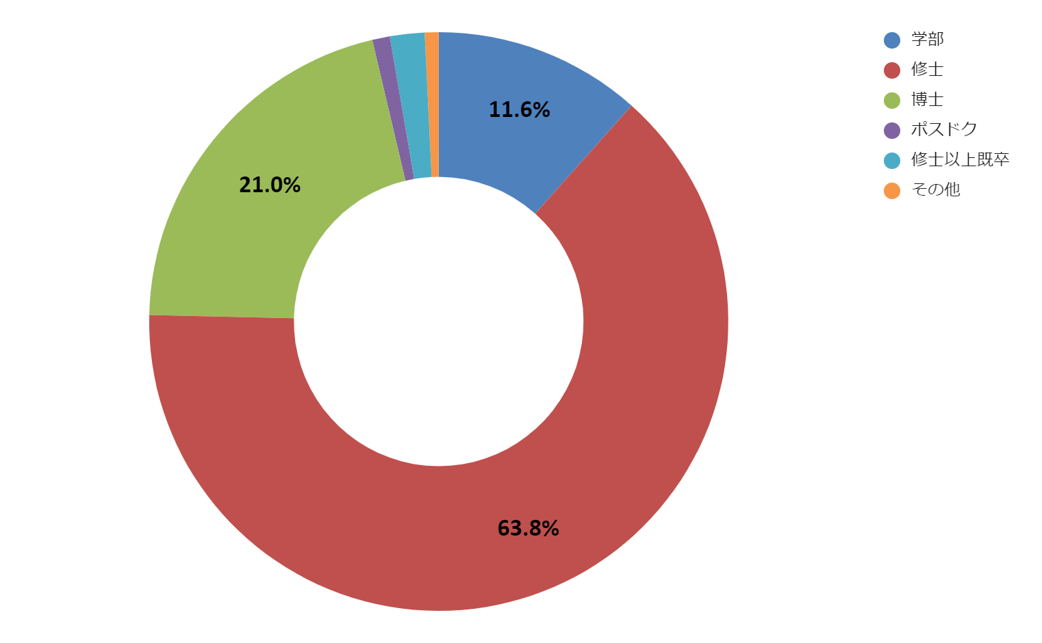 アカリク診断の利用者は63.8%が修士課程在籍中、20.8%が博士課程在籍中となっており、利用者の8割以上が大学院生の方となります。