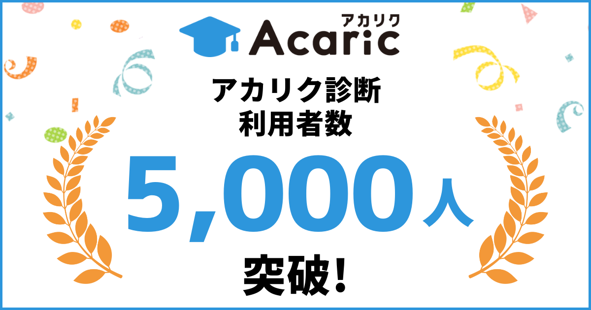 この度、ローンチから約3か月でアカリク診断の利用者数が5,000人を突破し、多くの皆様の自己分析をサポートできていることをうれしく思います。利用者の方々からは、自分と同じ属性の人と回答の比較ができるため、自己理解の深まりや自身の強みの発見に役立ったとの声をいただいております。