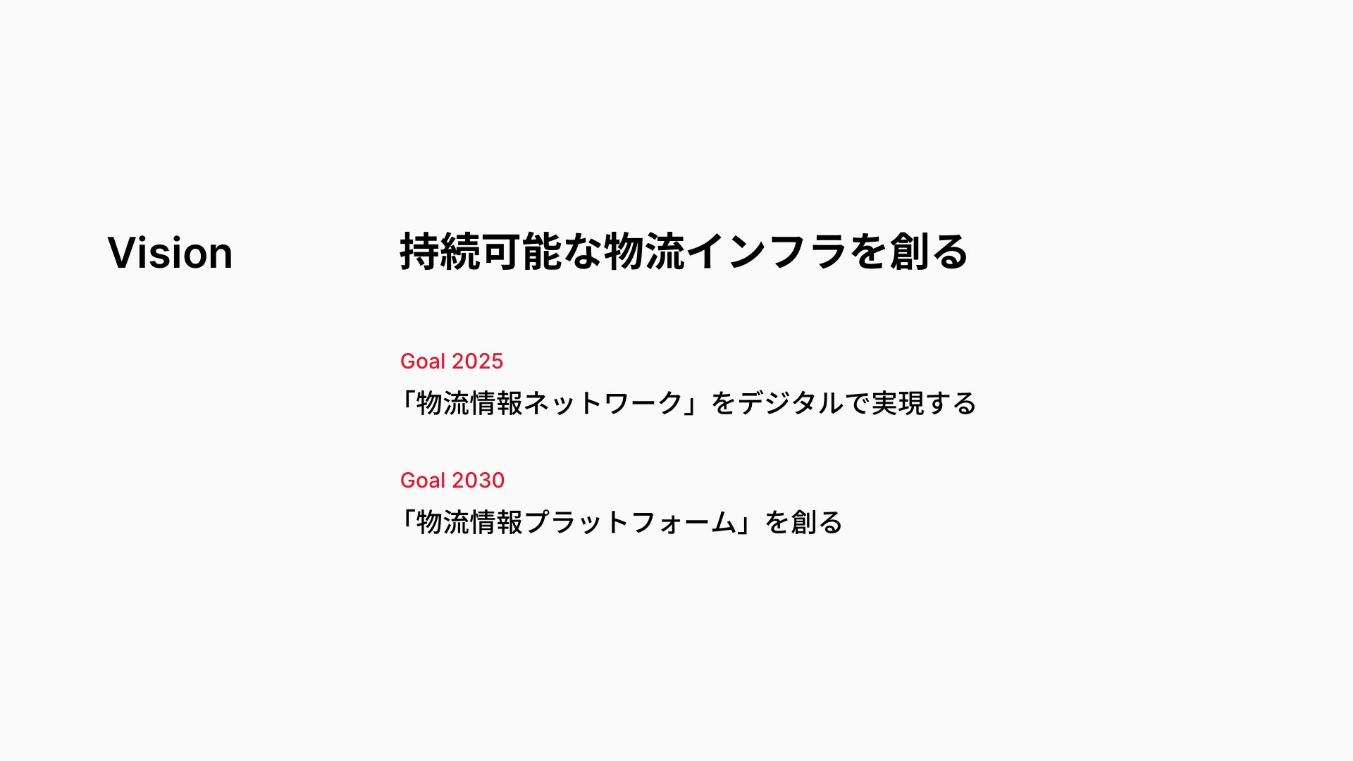 Vision(私たちが実現する未来):持続可能な物流インフラを創る