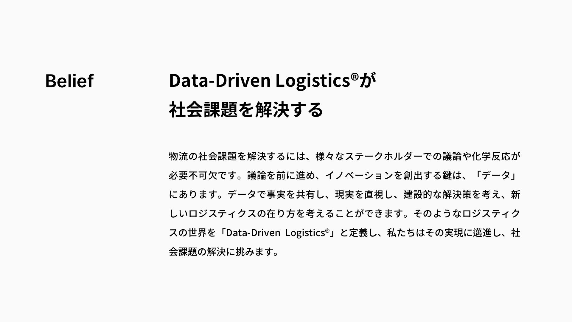 Belief(私たちの信念):データドリブン・ロジスティクスが社会課題を解決する