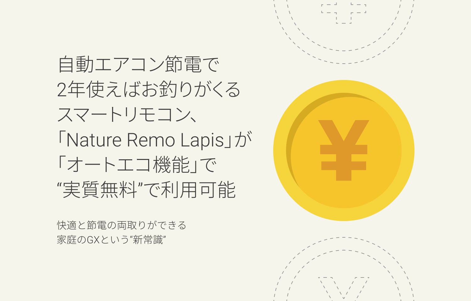 「自然との共生をドライブする」をミッションに掲げるNature株式会社(所在地:神奈川県横浜市、代表取締役:塩出 晴海、以下「Nature」)が開発・販売するスマートリモコン「Nature Remo Lapis(ネイチャーリモラピス)」に搭載された「オートエコ機能」が、2年の利用(※1)で製品価格を上回る節電効果をもたらすことを確認しました。「オートエコ機能」は、エアコンを自動制御し、快適性を損なうことなく電力消費量を削減する機能です。本機能を利用したNature社員の節電実績と「Smart Energy Lab(スマートエナジーラボ)」で行った実験データを公開し、“使うだけで節電できる”新しいスマート家電の在り方と有用性を提示します。