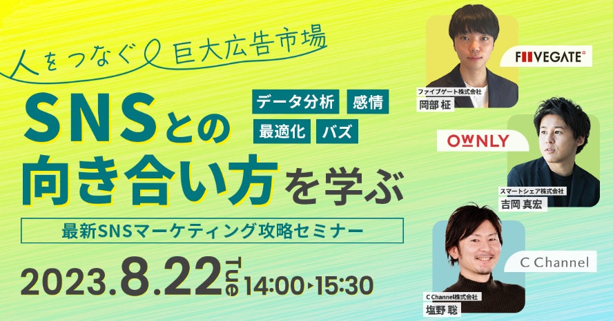 【2023/8/22(火)開催】<データ分析・最適化・感情・バズ> 人をつなぐ巨大広告市場「SNS」との向き合い方を学ぶ〜最新SNSマーケティング攻略セミナー〜