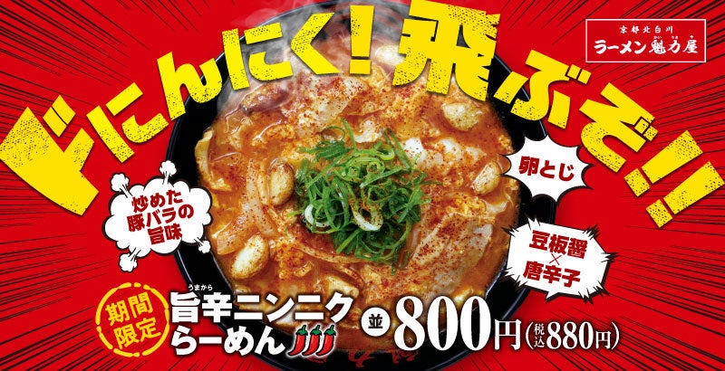 京都北白川ラーメン魁力屋をチェーン展開する株式会社魁力屋(https://corp.kairikiya.co.jp/ 本社:京都市中京区、代表取締役社長:藤田 宗、以下魁力屋)は、2024年4月3日(水)より、「旨辛ニンニクらーめん」を期間限定で販売開始いたします。