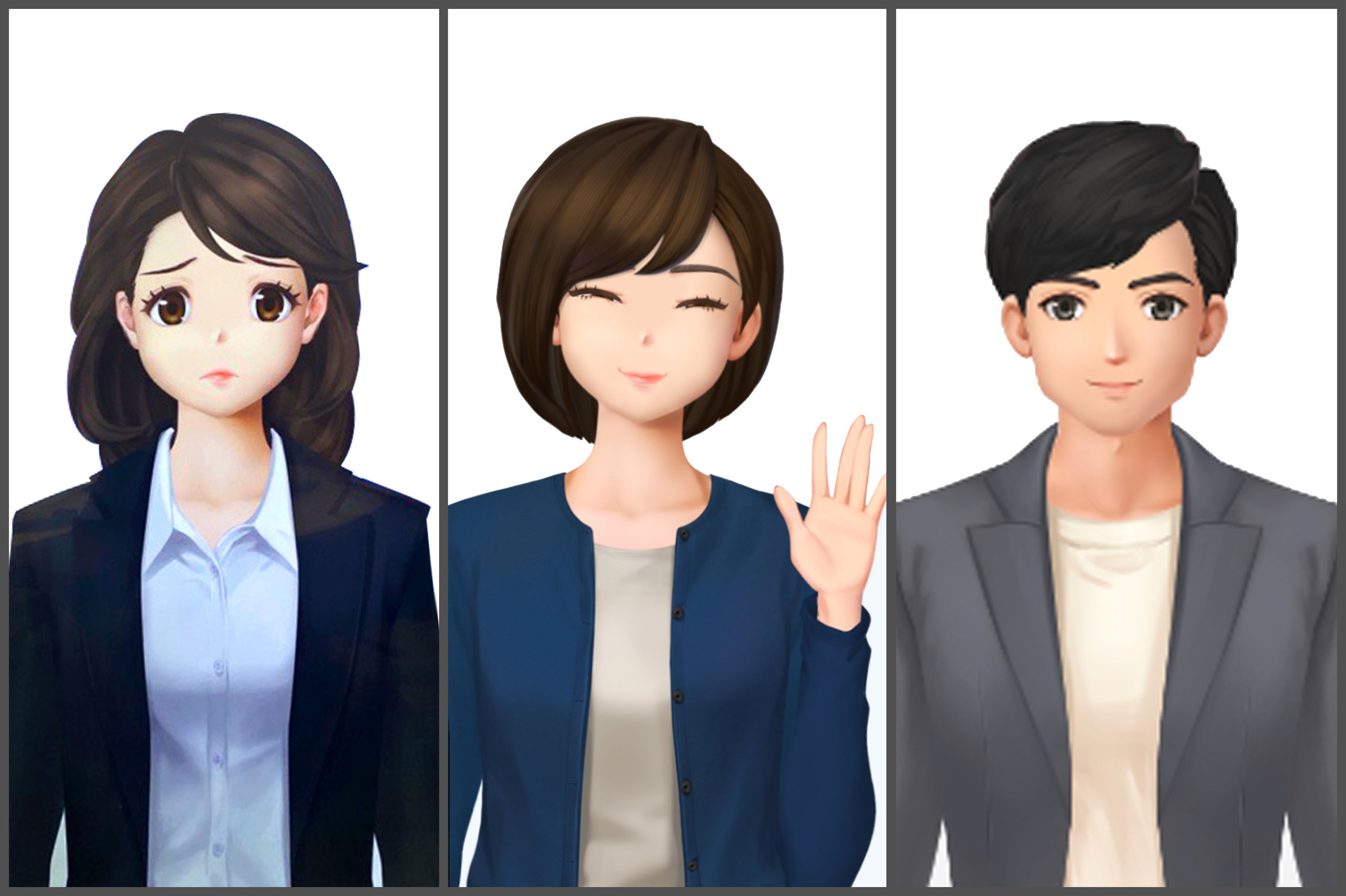 アバター接客では、モニターに映ったアニメ女性のキャラクターが、遠隔操作する社員の瞬きや顔の動きに連動します。対応者は身だしなみに気を尖らせなくてもいいだけでなく、表情管理の面でもアニメーションで均一化されるため、接客の印象にムラがなくなります。また、音声は社員の声そのままとなりますので、電子音や合成音声のような無機質な声ではなく、感情のこもった接客となります。また、アバターは男女バリエーションがあるため、男性社員でも対応が可能です。