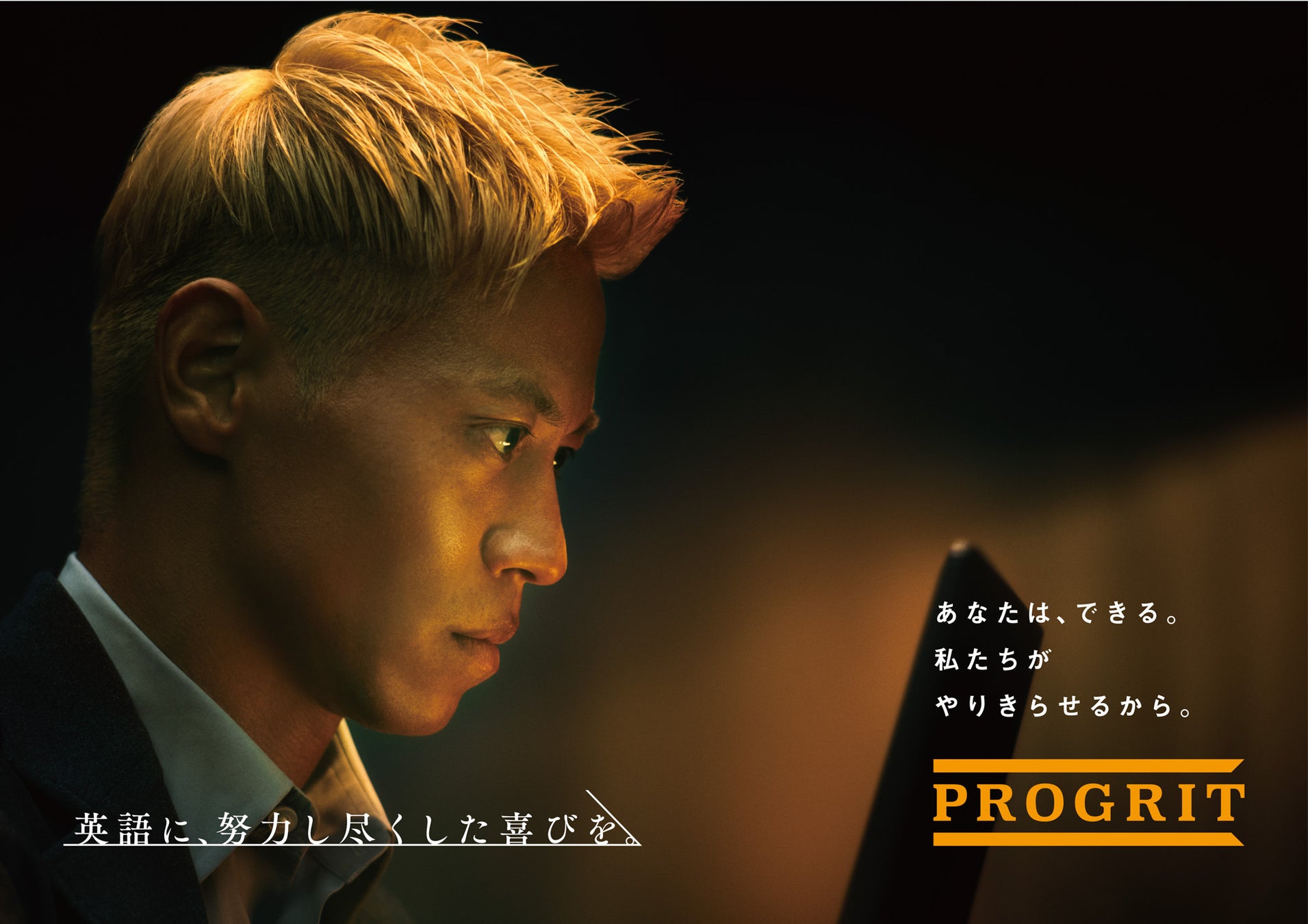 今回の新ビジュアルには、プログリットアンバサダーであり、2018年8月から現在まで約6年間プログリットで英語学習を継続されている、本田圭佑氏にご出演いただきました。