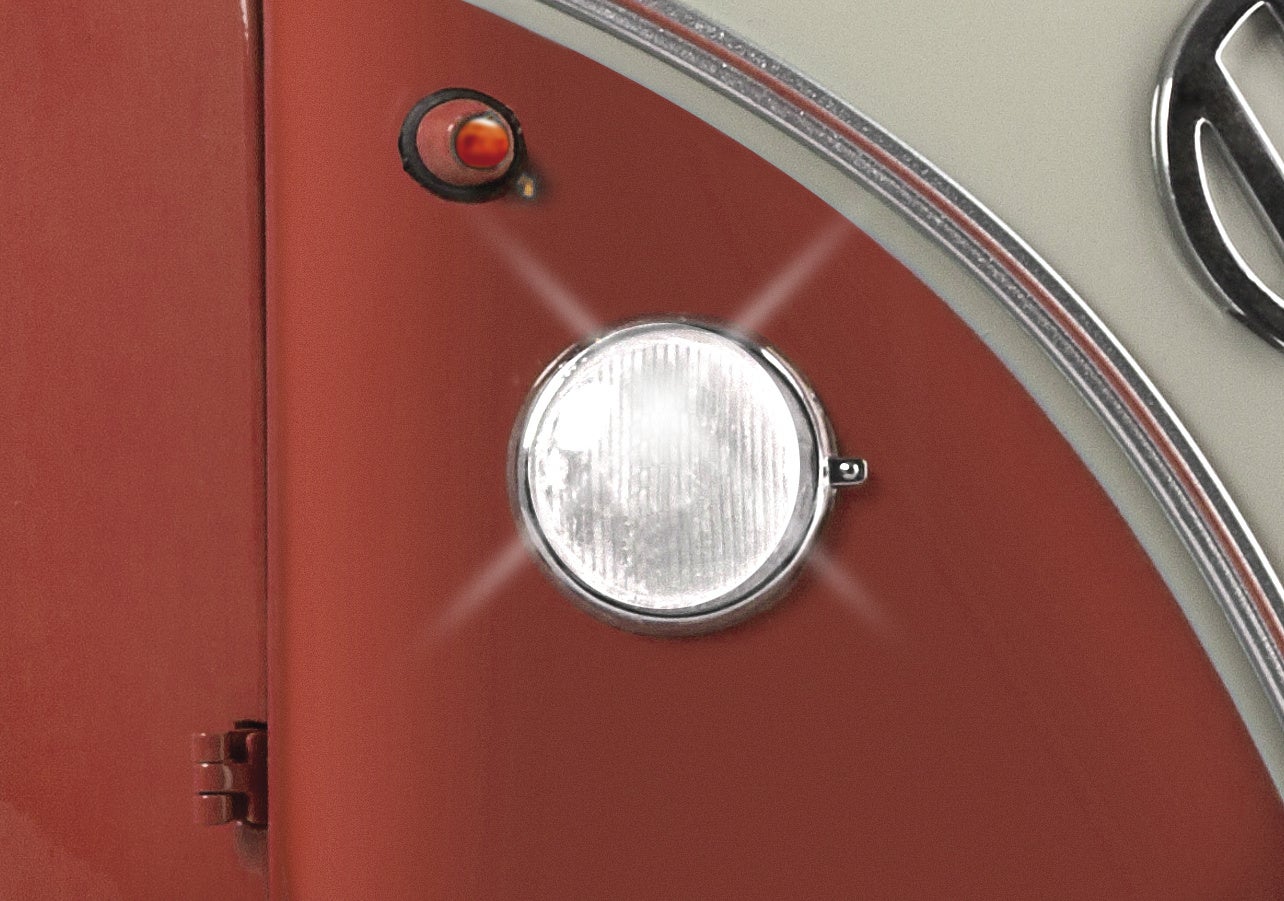 フォルクスワーゲン トランスポーターの最も象徴的な車、「フォルクスワーゲン T1」。23の窓とサンルーフを備えた特徴あるデザインを1/8スケールで実車に忠実に再現しました。ボディ外装は金属製で、リアルな質感を追求。レジャー好きなオーナーたちが愛した「ワーゲン・バス」が表現できるように、発売当時の時代感を彷彿とさせるデザインのスーツケースとサーフボードが付属し、ラゲッジラックにディスプレイすることもできます。