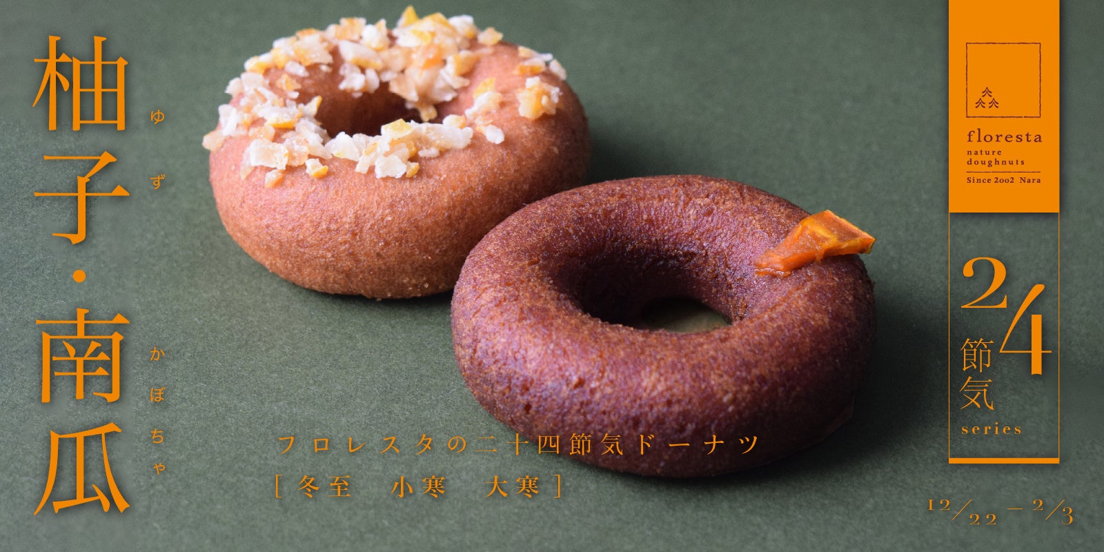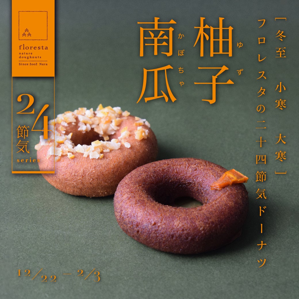 株式会社フロレスタ(本社:大阪市浪速区/代表取締役社長:辻尾吉厚)は、2022年より旬を味わう二十四節気ドーナツをリリースし、第8弾として12月22日(木)の冬至から「柚子」と「南瓜」のドーナツを販売いたします。