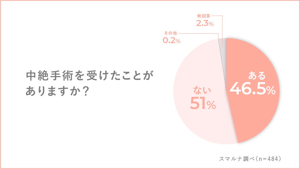 続いて「中絶」について調査したところ、今回の調査では妊娠の経験がある人のうち中絶手術を受けたことがある人は46.5%と約半数に上ることがわかりました。