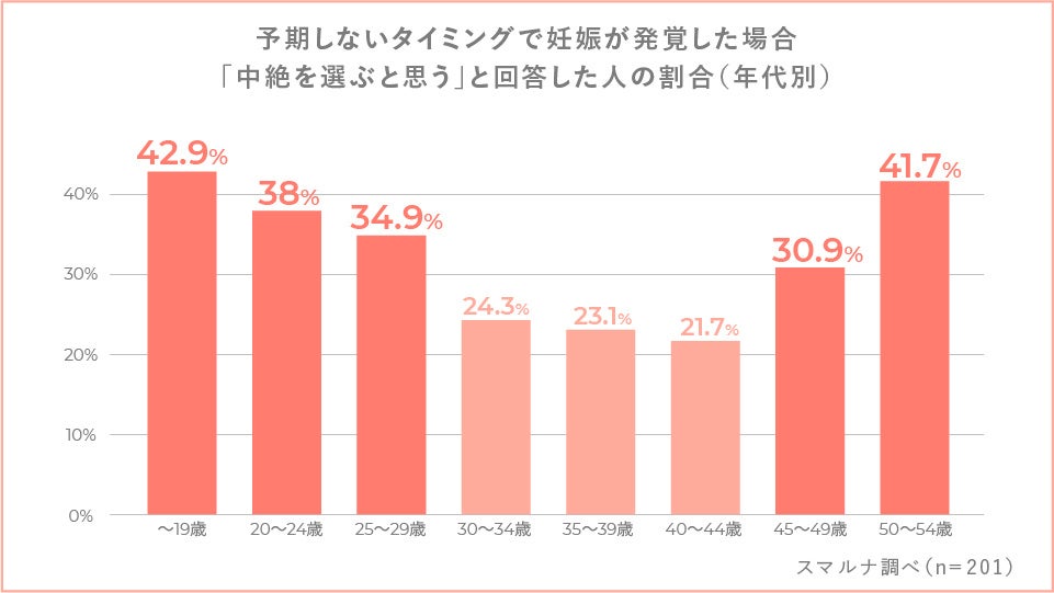 もし予期しないタイミングで妊娠が発覚した場合「中絶を選ぶと思う」と回答した人が28.6%。10〜20代と45歳以上で高い傾向であることが明らかに