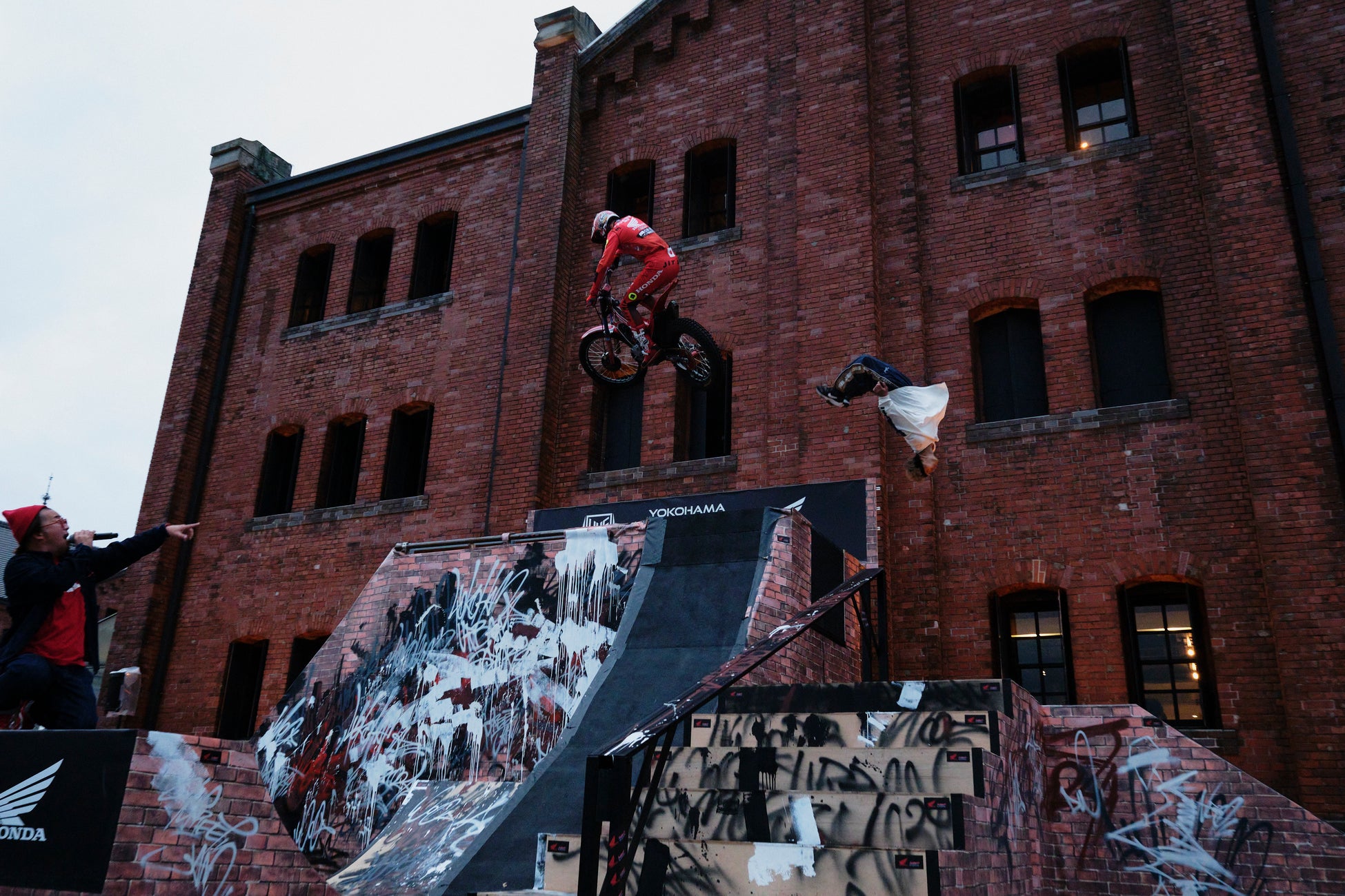 国内最高峰の大会「MFJ全日本トライアル選手権」の史上最多タイトルホルダーである小川友幸選手がプロデュースする“BIKE TRIAL DEMO”=“YUSF内特設セクションにてパルクールアスリートと行う国内唯一のコラボレーションDEMO”を開催。
