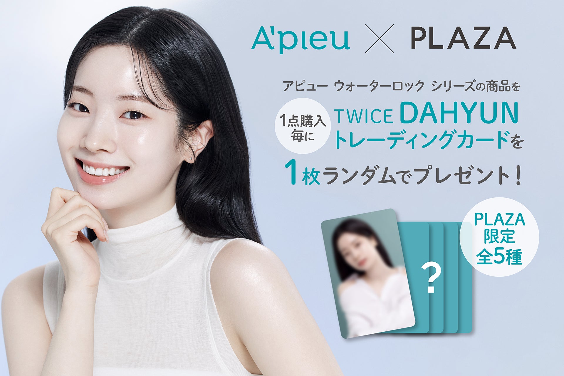 2023年12月13日(水)より「アピュー ウォーターロック」シリーズの商品を購入するとアピュー ブランドミューズTWICE DAHYUN(ダヒョン)のトレーディングカードがもらえる購入者限定キャンペーンをPLAZA限定でスタートします。