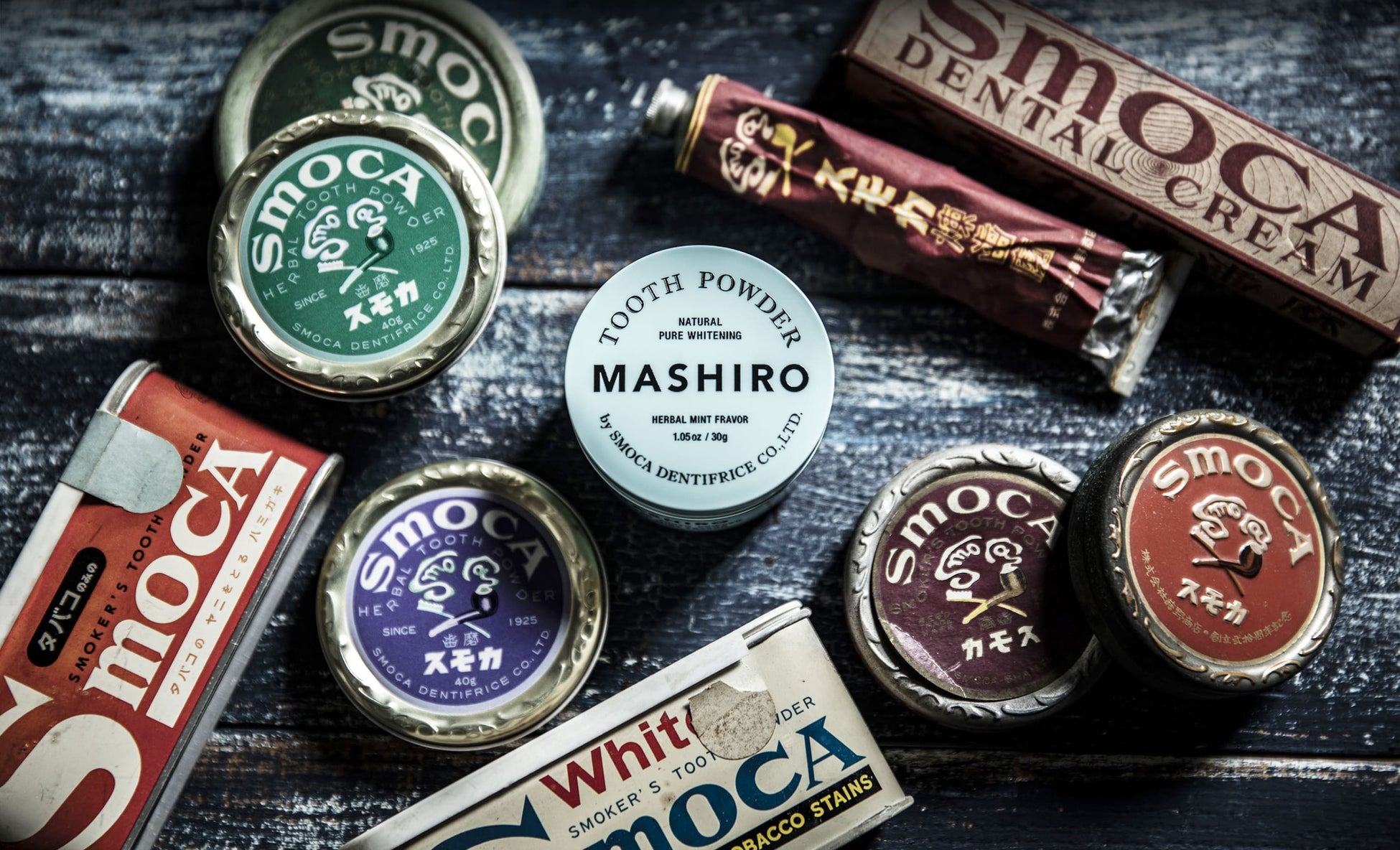 スモカ歯磨では、「効く、歯磨き粉」をモットーに、歯磨き粉とは思えないおしゃれなパッケージと粉タイプの歯磨き粉という独自性を持ち合わせた「MASHIRO」や、朝と夜とで使い分ける歯磨き粉「COSMiON」など歯磨き粉の効果はもちろんのこと、香りも楽しめる点をセールスポイントにしています。