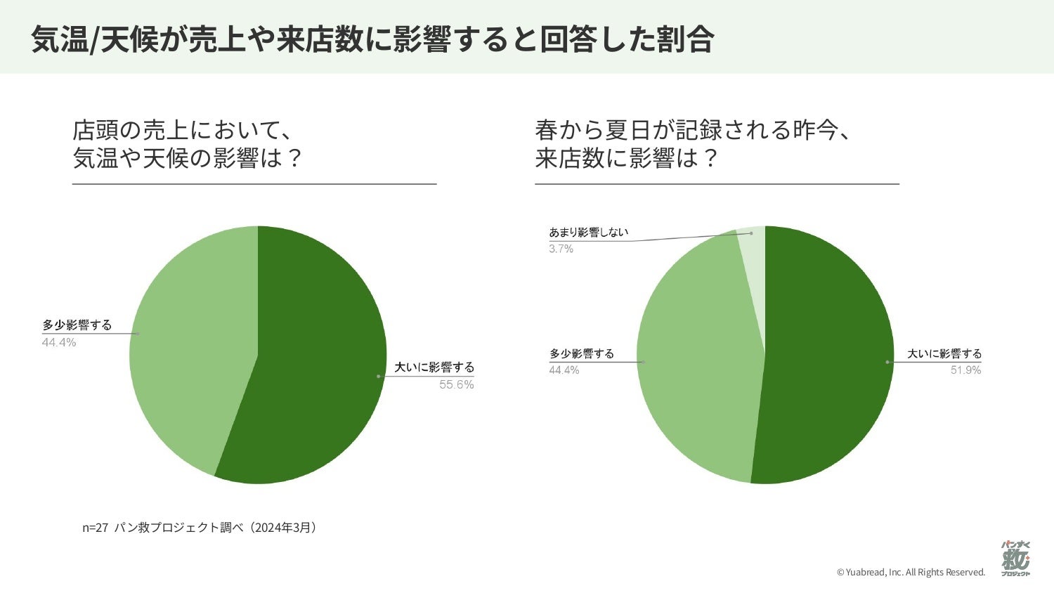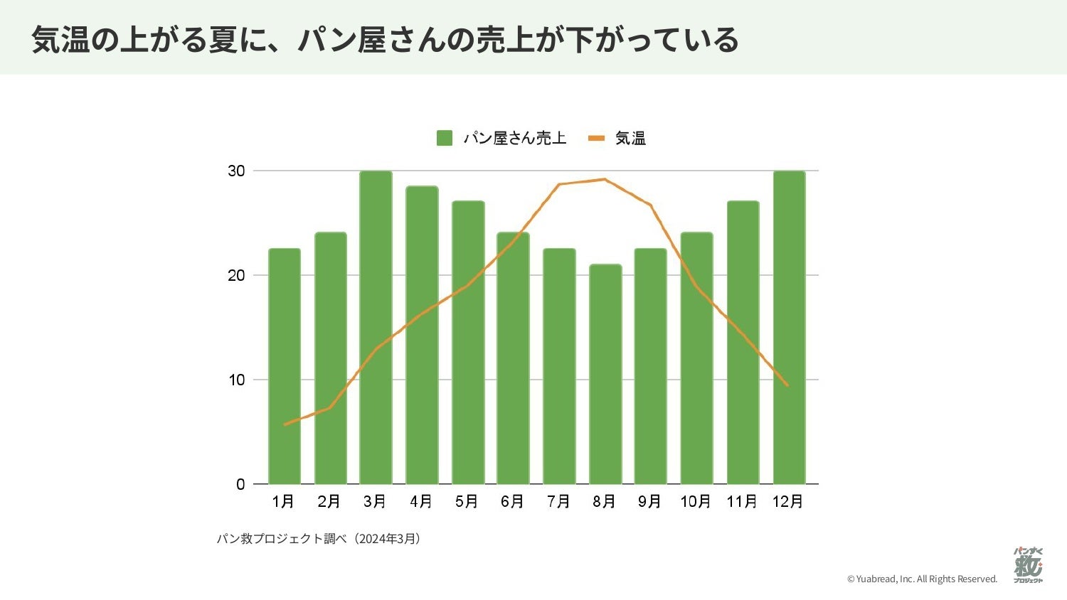 プロジェクト発足のきっかけは、気温の上がる夏の時期にパン屋の売り上げが下がっているという話をヒアリングしたことです。今年パンスク提携パン屋に取ったアンケートでも、気温や天候がパンの売り上げや来店に「影響する」という声が多く挙がりました。特に個人経営のパン屋にとって売上減は大きく響き、来店客からは例年の猛暑で「夏は暑いのでさっぱりしたものを食べている」「暑くて外出を控えまとめ買いをしている」等の声を受け、人手不足や物価高騰などの厳しい状況下でなんとか手助けができないかと考え、プロジェクトを立ち上げました。