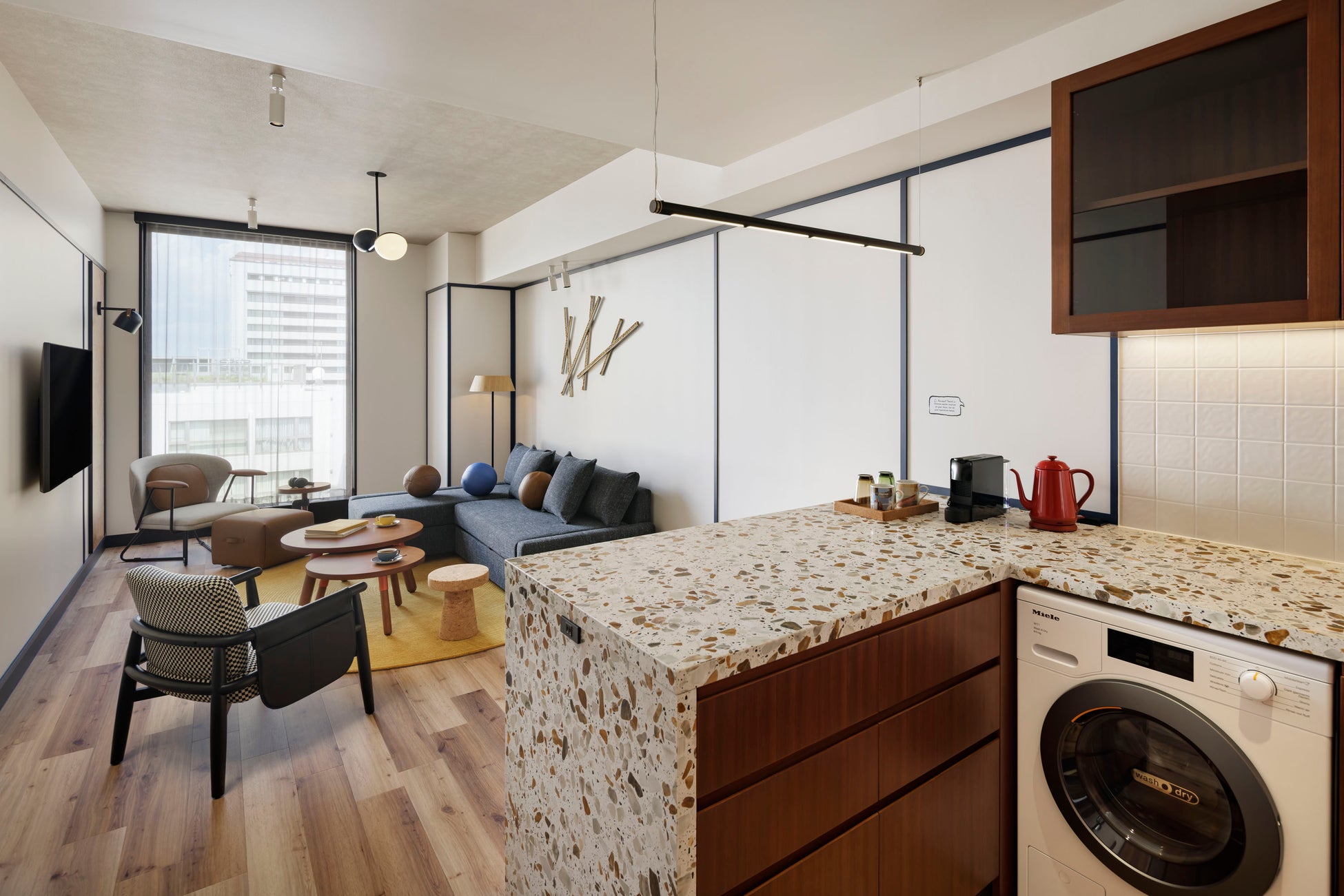 た色彩豊かで大胆なインテリアデザインやグラフィックアートを随所に配し、ホテル内でも街とのつ