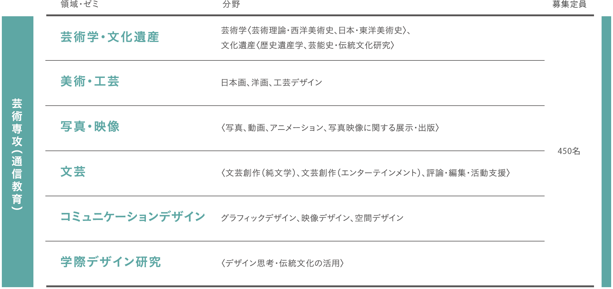 在籍者数:13,719名 (通信教育部芸術学部 正科生、2022年5月1日現在)