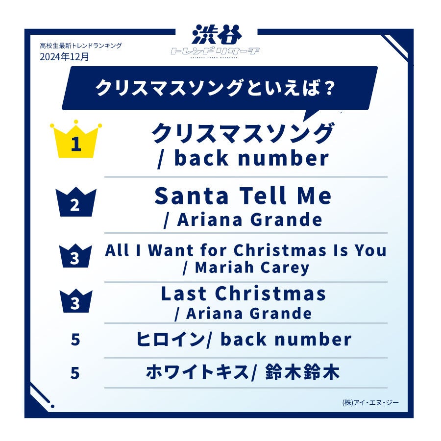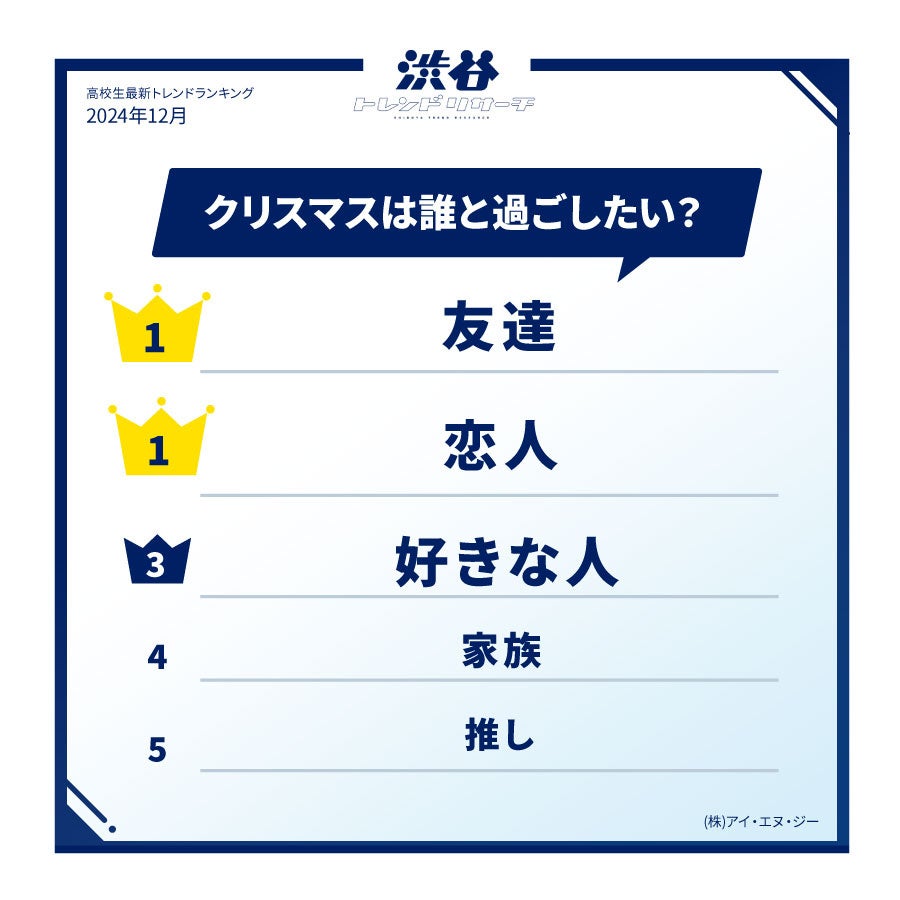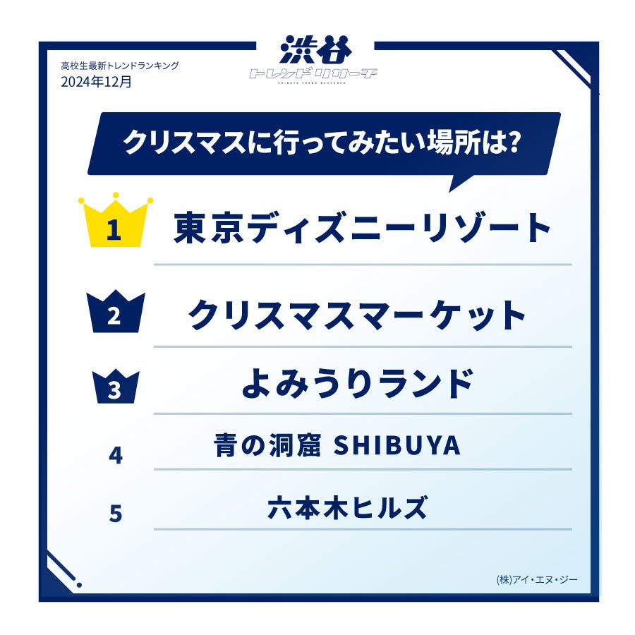【イマドキ高校生の最新!クリスマス調査】高校生が選ぶ定番クリスマスソング&クリスマスに行きたいスポット/過ごしたい場所TOP10!高校生の最新トレンド2024年冬!渋谷トレンドリサーチ