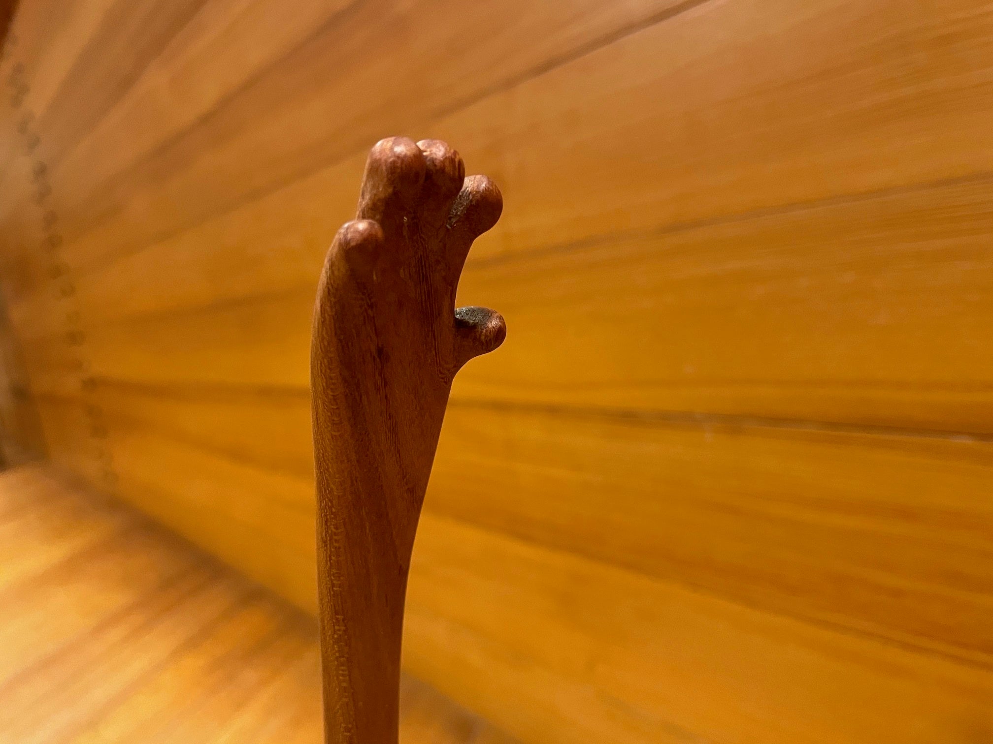 長年カワウソの飼育に携わってきたスタッフも驚く仕上がりで、三重県産の欅(けやき)の優しい感触が本物のカワウソの手のようにも感じることができます。ツメナシカワウソの手を「木工細工でどこまで再現できるのか?」という何気ない要望に、職人さんが全力で応えてくれました。