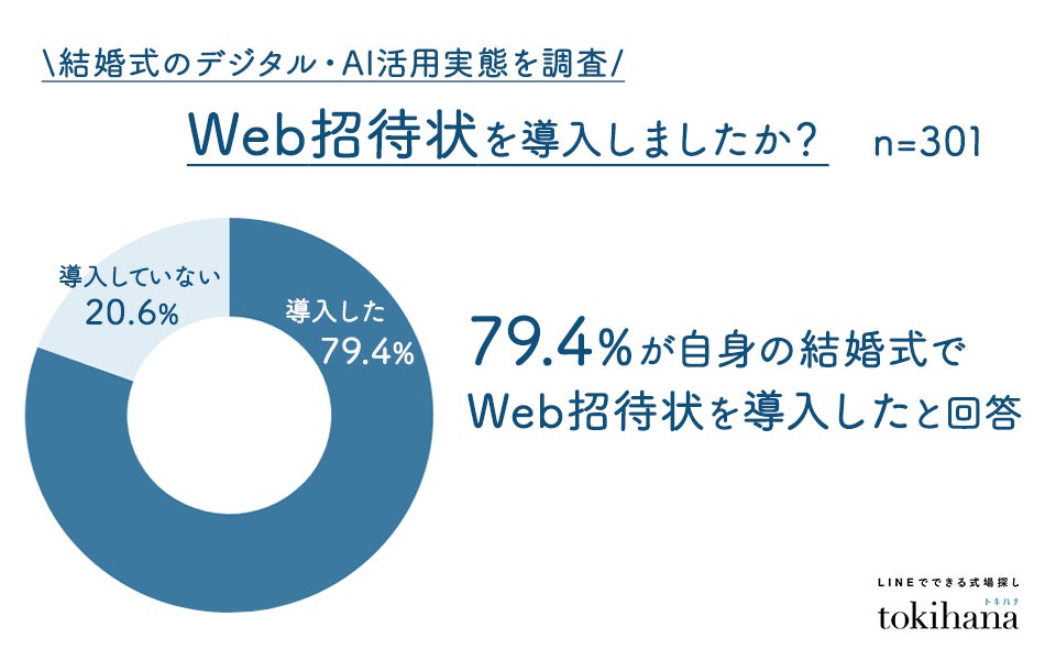 「ご自身の結婚式でWeb招待状を導入しましたか?」という質問に対し、79.4%がWeb招待状を利用しているという結果となりました。