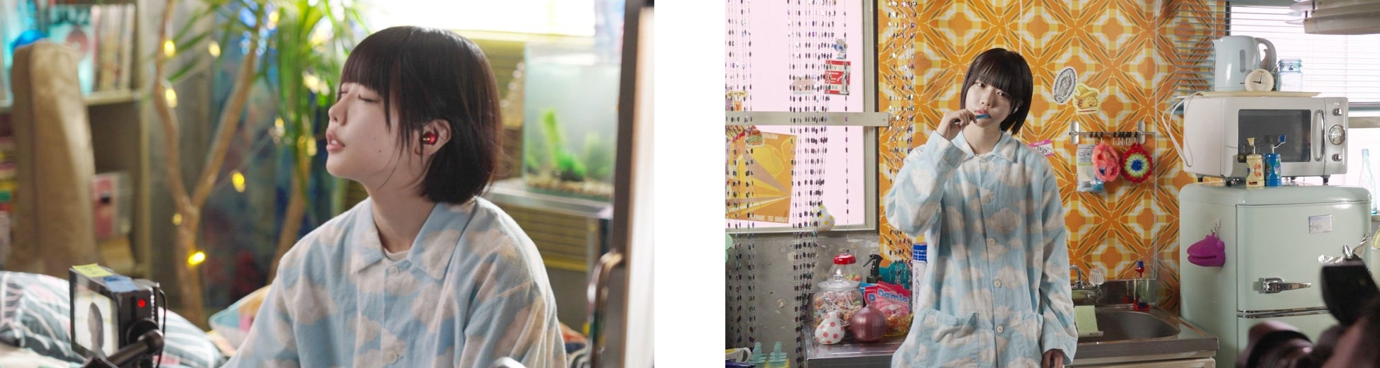 本製品を着用しながら音の世界に没頭するシーンで魅せる、あのさんのアーティストならではの表現力が見どころです。さらに、企業ブランドプロモーションでは初となるあのさんのパジャマ姿にもご注目ください。