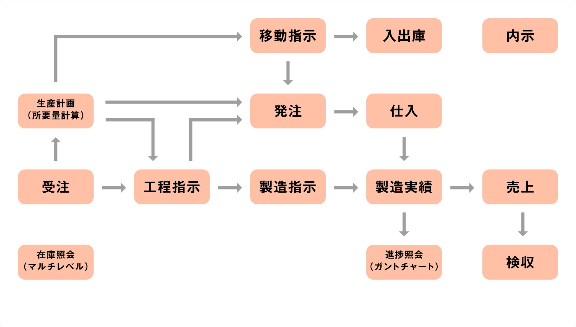 主に生産計画、進捗管理、原材料調達、在庫管理の機能を強化しており、製造を中心に事業展開されている企業さまから、部分的に製造を担われている企業さままで、それぞれの業態に合った最適な業務体制づくりに寄与します。