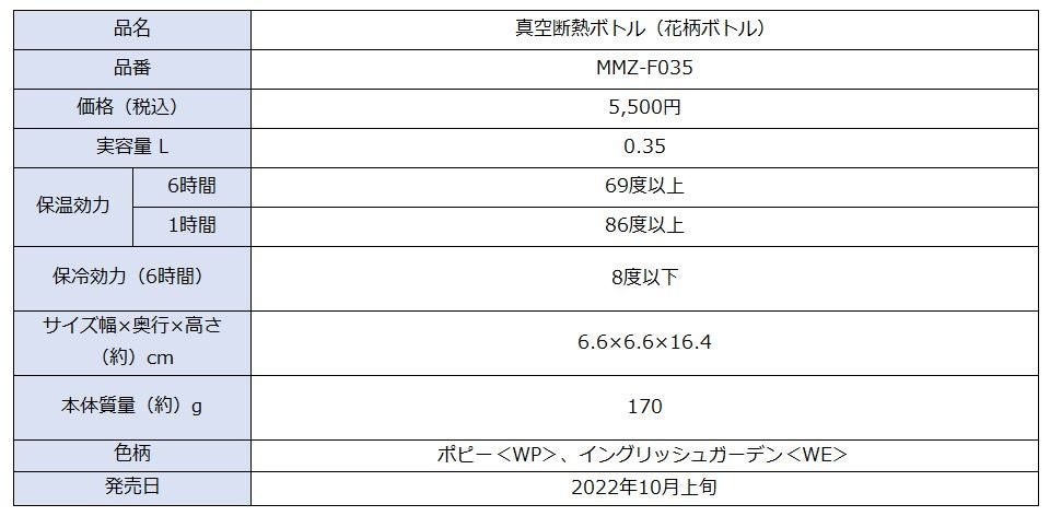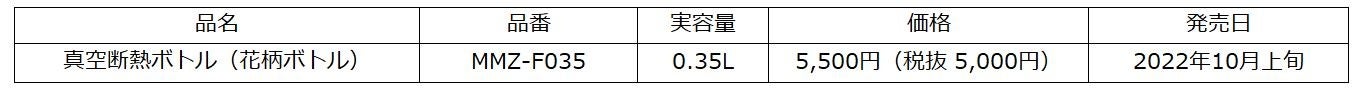 真空断熱ボトル(花柄ボトル) MMZ-F035 2022年10月上旬発売