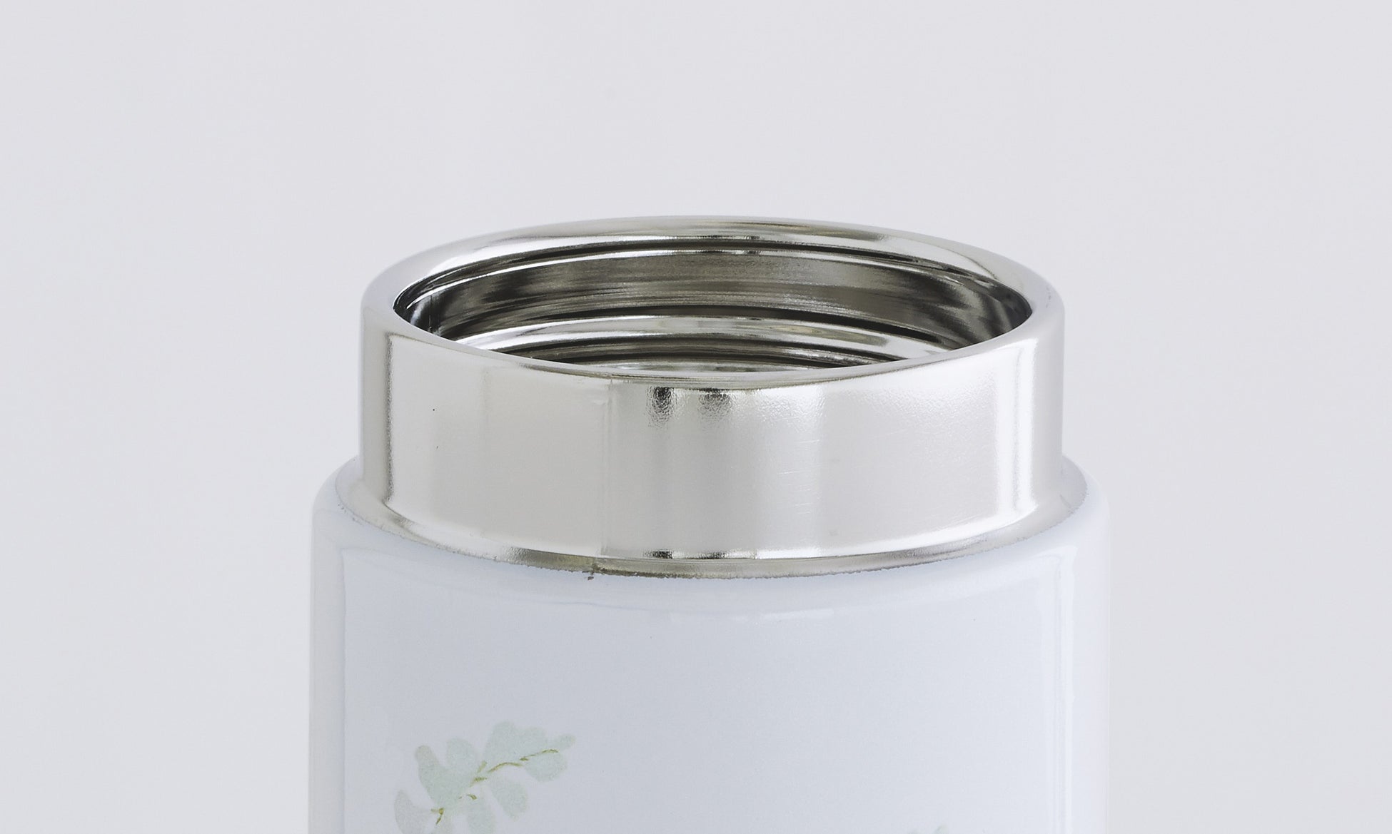 ステンレスの清潔さと飲み心地の良さを両立させた、なめらか飲み口。飲み口上部をカールさせることで、マグカップのような口あたりを再現しました。