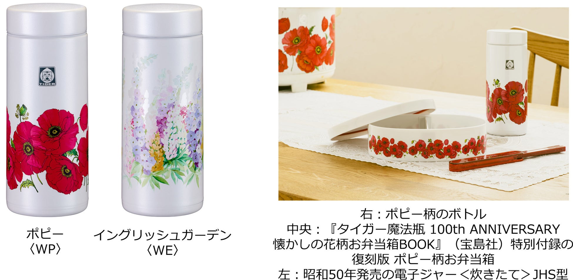 また、株式会社宝島社より9月27日に発売された、『タイガー魔法瓶100th ANNIVERSARY 懐かしの花柄お弁当箱BOOK』の特別付録のお弁当箱にもポピー柄が採用されており、同じ花柄のお弁当箱とボトルをセットで使って楽しんでいただけます。