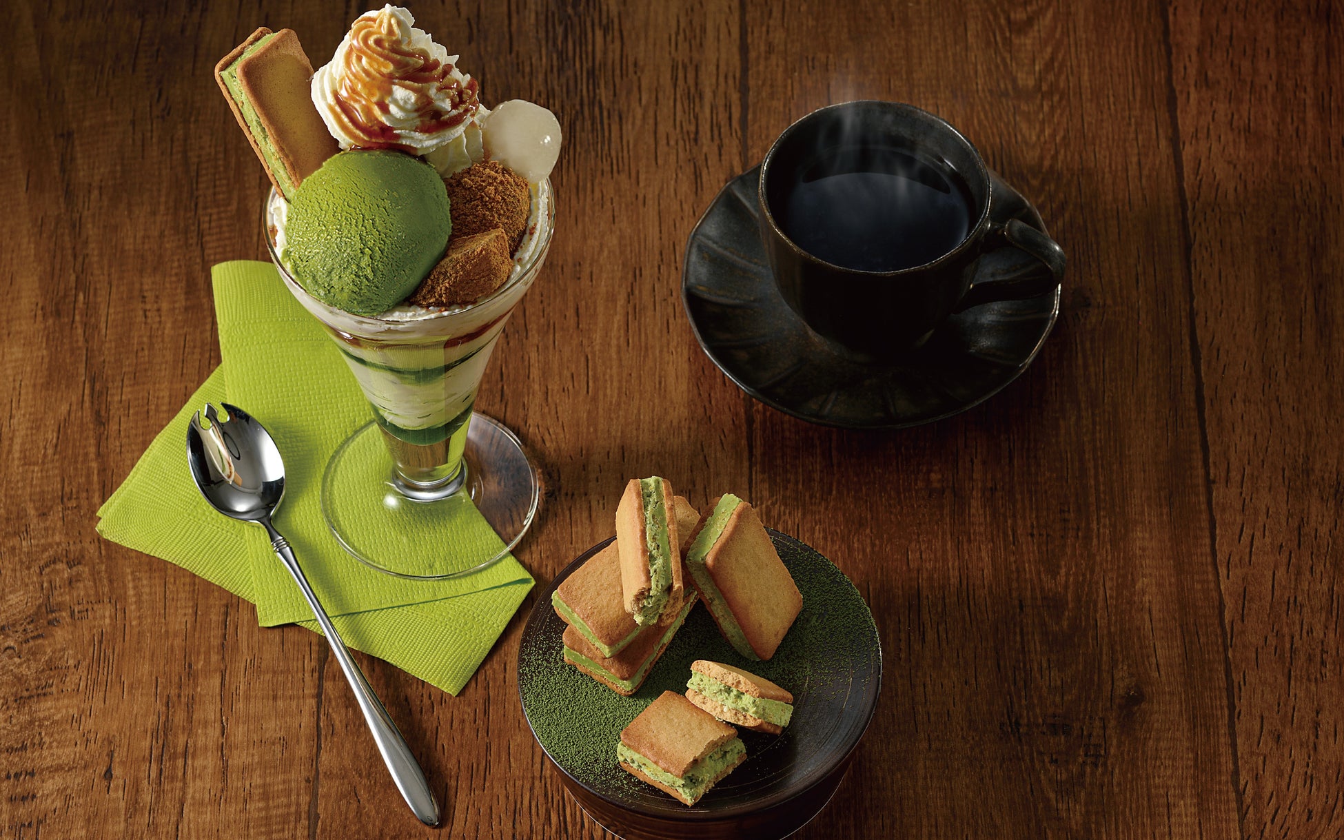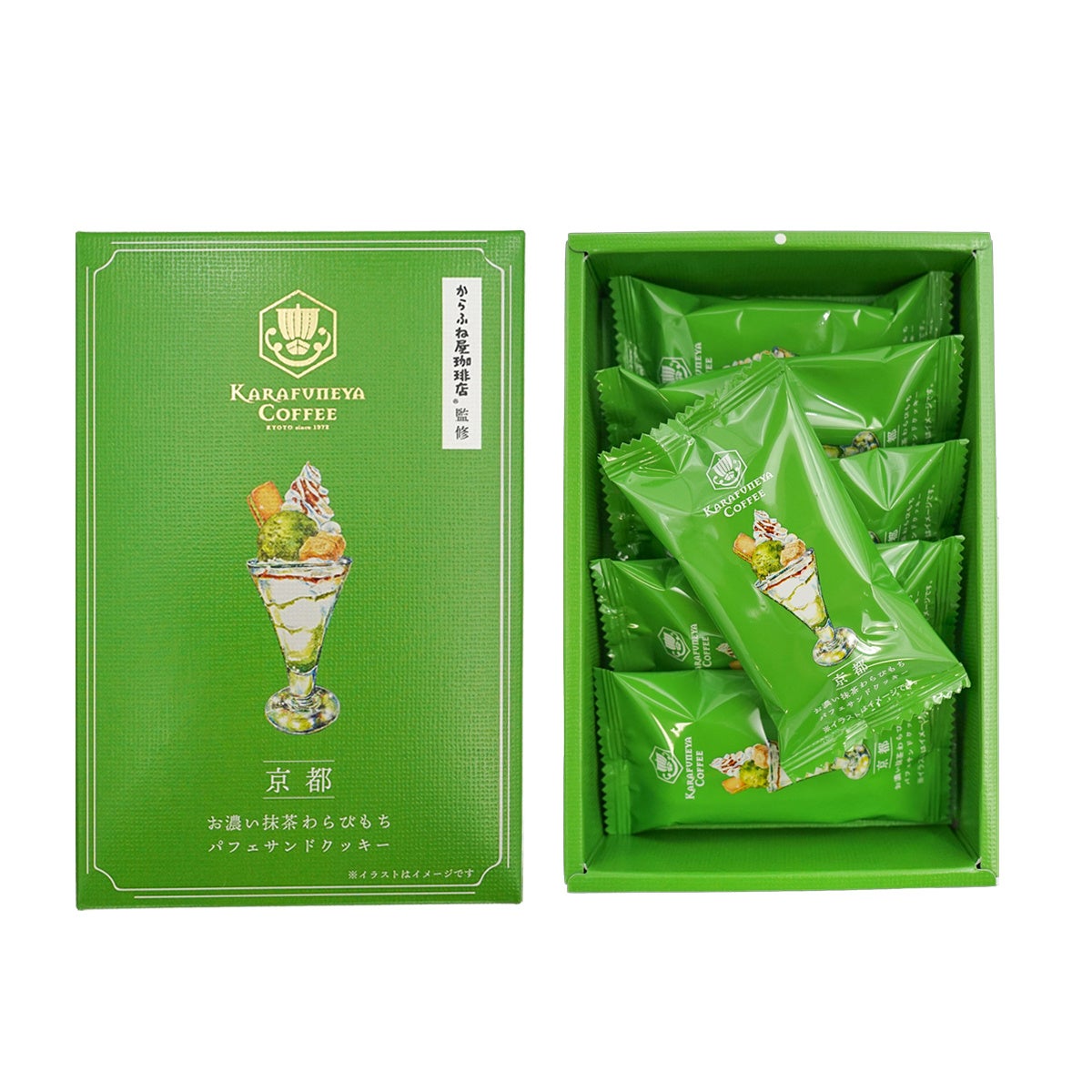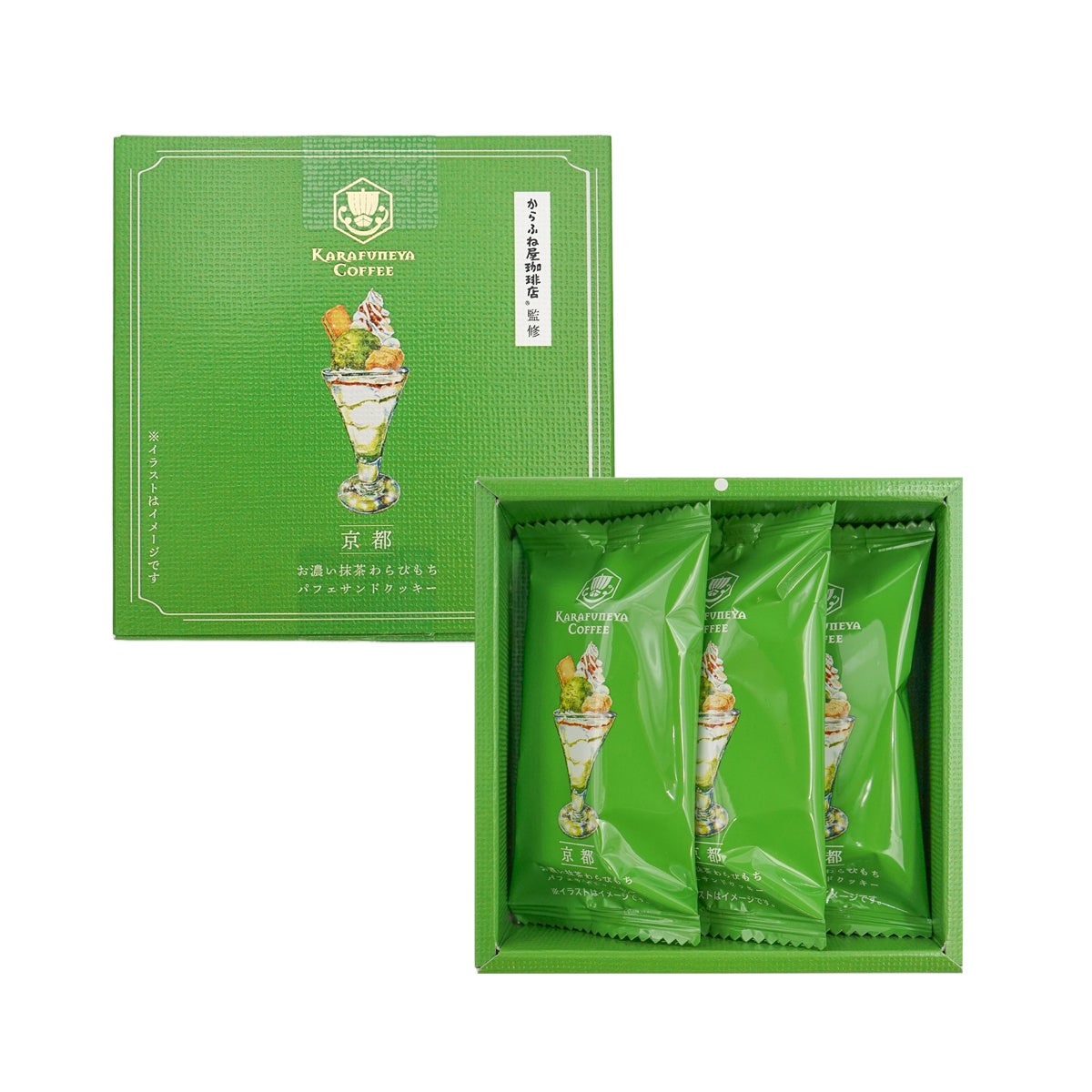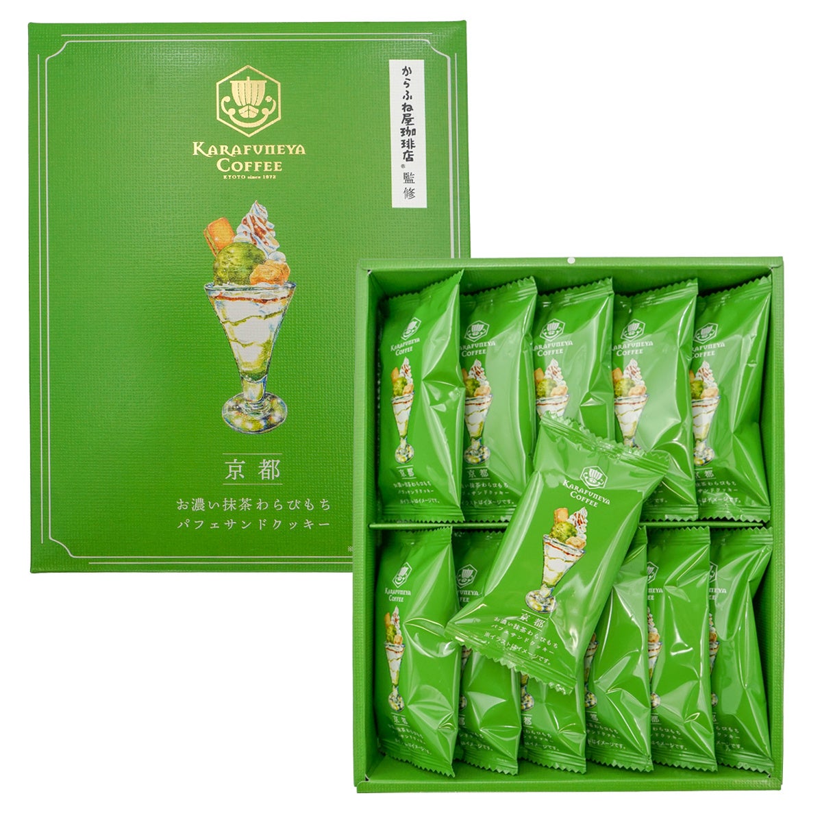 「からふね屋珈琲店」監修の「京都 お濃い抹茶わらびもちパフェサンドクッキー」