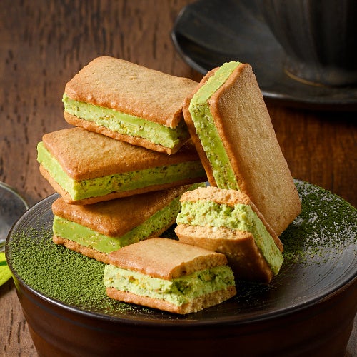 まろやかな抹茶のチョコレートをクッキーでサンドいたしました。
