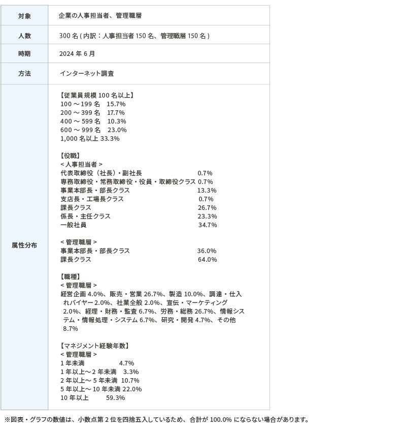 「マネジメントに対する人事担当者と管理職層の意識調査2024年」の結果を発表