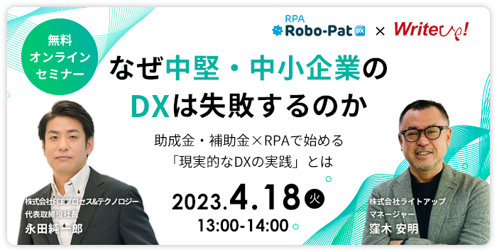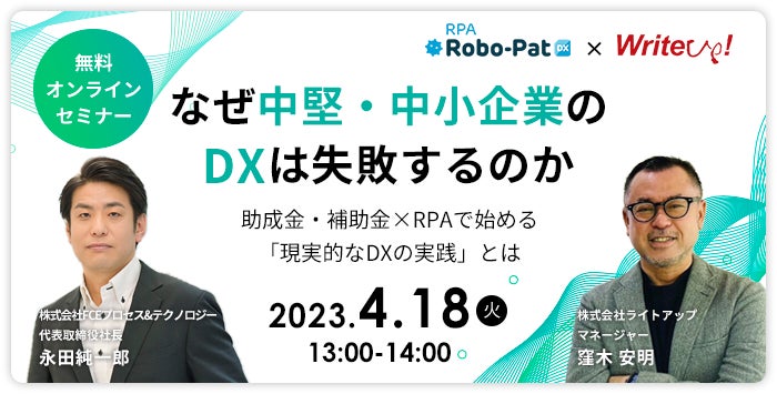 【共催セミナー】「RPAロボパットDX」ライトアップとの助成金・補助金×RPAで始める「現実的なDXの実践」共催セミナーを開催