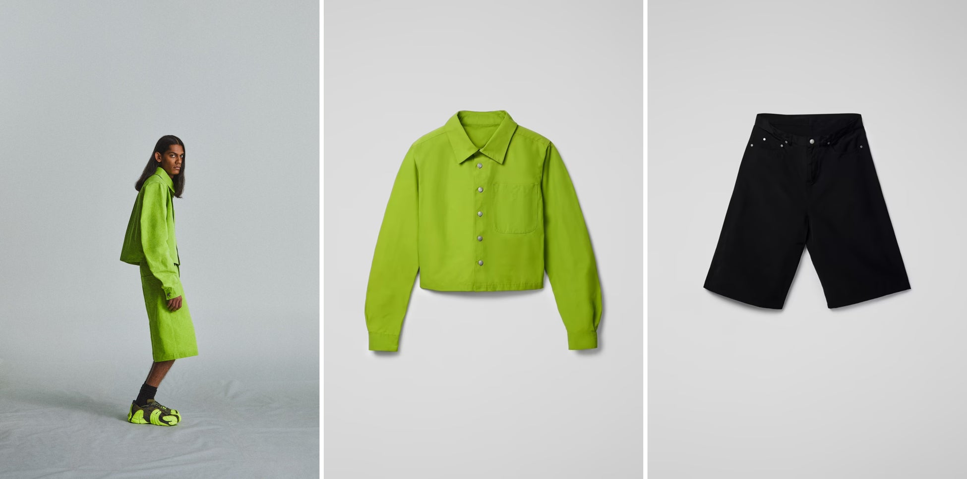 大胆でテクニカルなルックスのシャツとショーツも登場。耐久性に優れ、ハリ感のあるロクヨンクロス(コットン60%、ナイロン40%)を採用し、シーズナルカラーのネオングリーンとブラックで展開します。