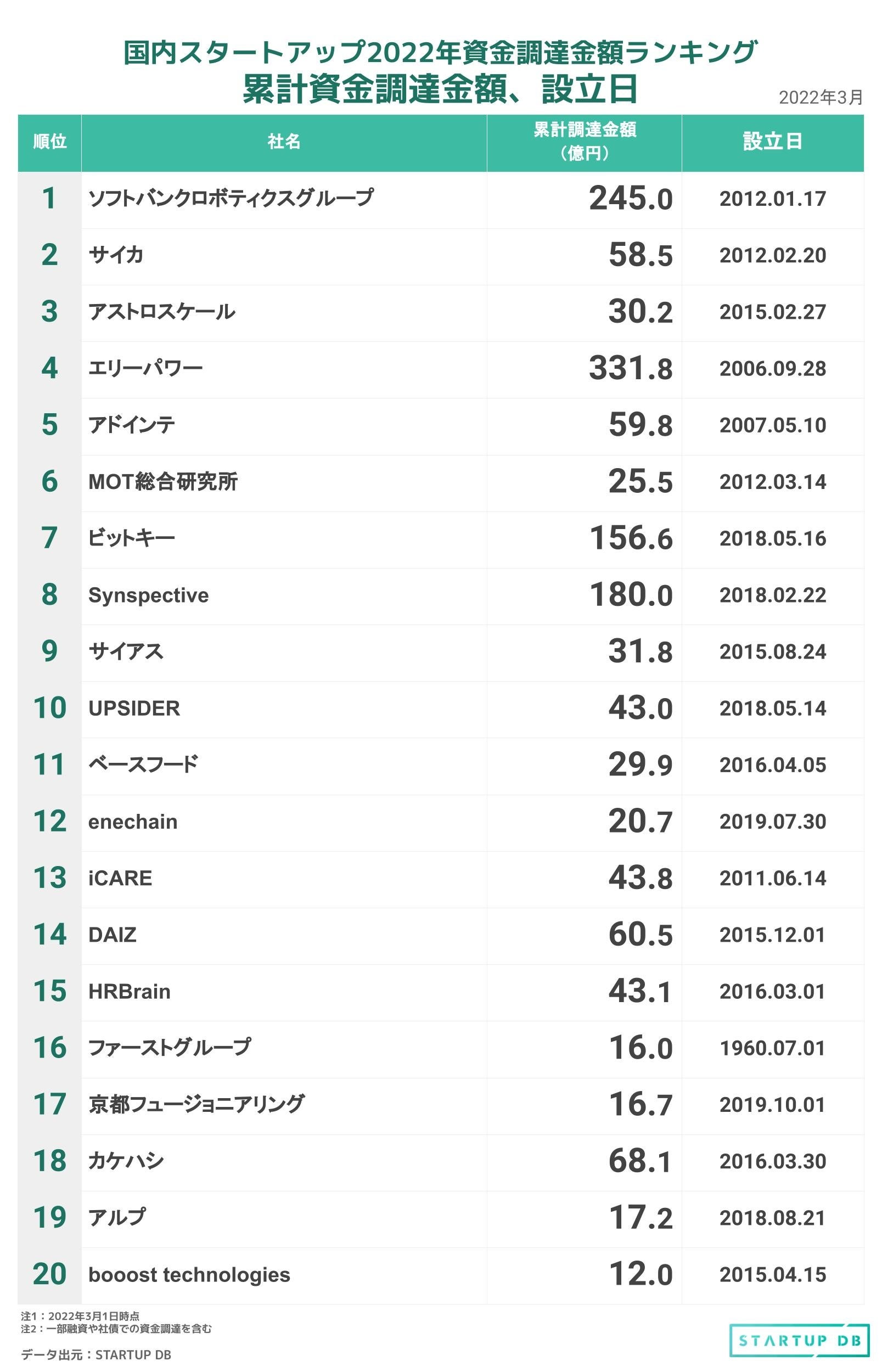 レポート記事:STARTUP DB (https://media.startup-db.com/research/funding-ranking-202202)