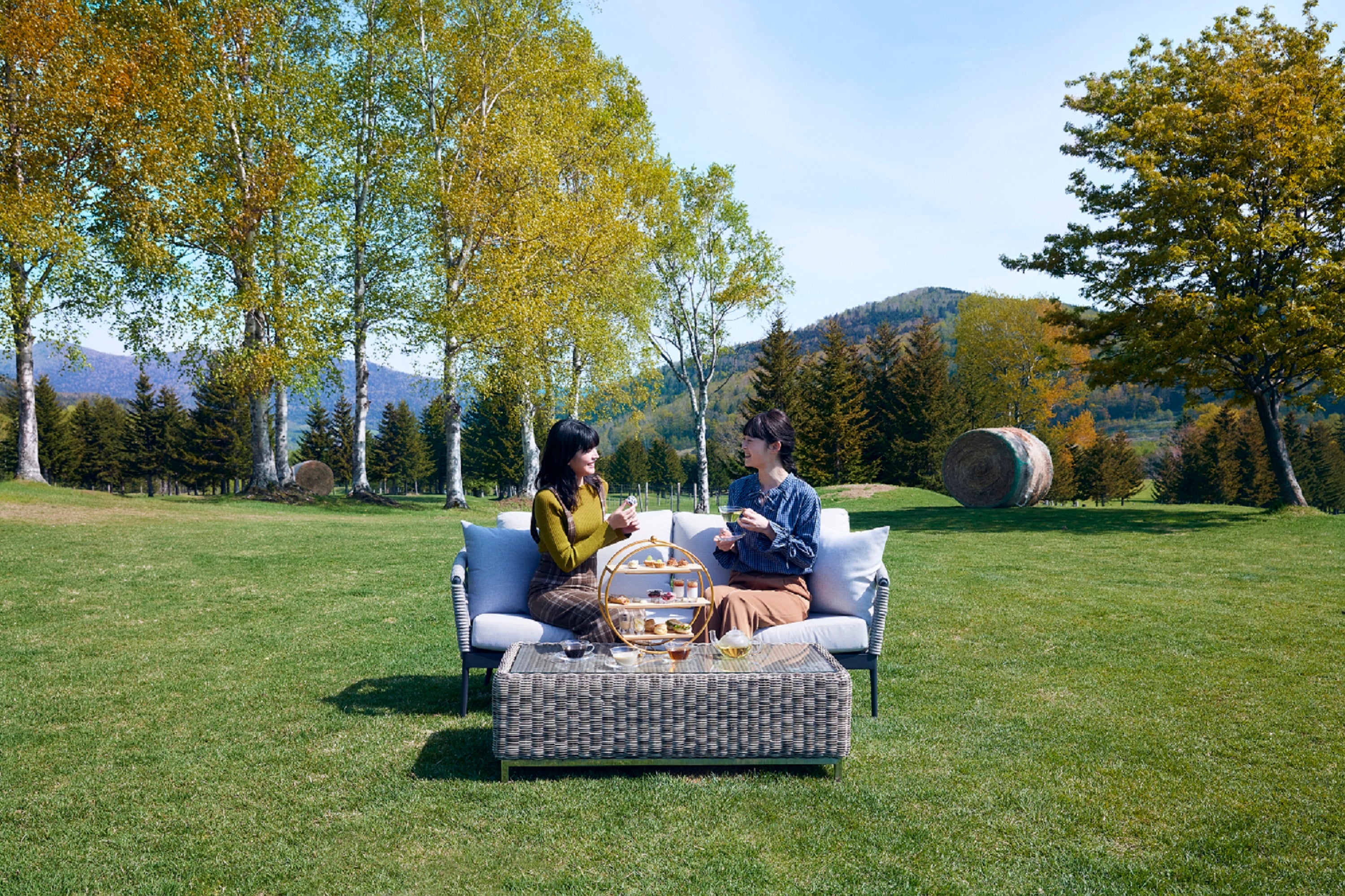 ファームアフタヌーンティーは、北海道ならではの牧歌的な風景が広がるファームエリアで楽しめます。ファームエリアは、約100ヘクタールと、広大な景色を望める場所です。秋は白樺の葉が黄色く染まり、牛やヤギ、羊などの動物がのんびりと暮らします。ファームエリアの一角にソファが設置されているので、大自然の風景を眺めてゆったりと寛ぎながら、秋のひとときを過ごせます。