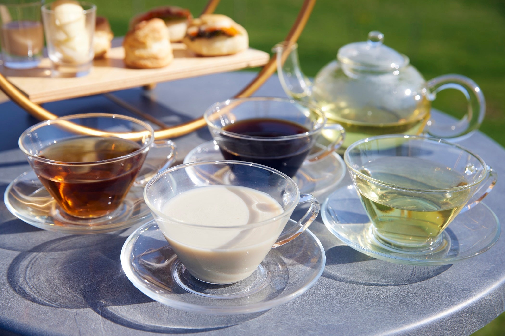 小菓子やフィンガーフードと共に味わうお茶は、ファーム星野や北海道ならではのオリジナルドリンクです。例えば、生クリームの生産過程で発生する脱脂乳を使用したチャイティーは、スパイシーで香り高いチャイをさっぱりとした脱脂乳を合わせることで飲みやすく味わえることが特徴です。また、ワイン用葡萄のリーフティーは、アイスではほんのりと感じるタンニンによってワインを味わうように、ホットでは時間とともに変わる香りの変化を楽しめます。