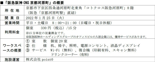 サテライトオフィス事業「阪急阪神ONS powered by point 0」第3号拠点「阪急阪神ONS京都河原町」が1月25日(火)、第4号拠点「阪急阪神ONS大阪梅田」が3月1日(火)オープン!