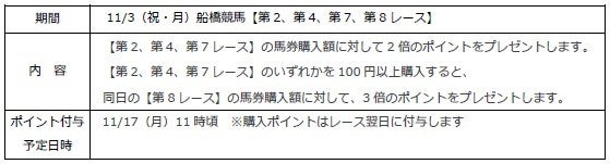 6等 競馬場内キャッシュレス受付カウンター(スタンド2階または3階特別観覧席エリ内)でキャッシュレスポイント付与