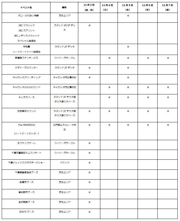 場内では抽選会やビギナーズカウンターなど、競馬ビギナーの方もお楽しみいただけるイベントを多数ご用意しております。熱戦とともに盛り上がる11月の船橋ケイバを、ぜひお楽しみください!