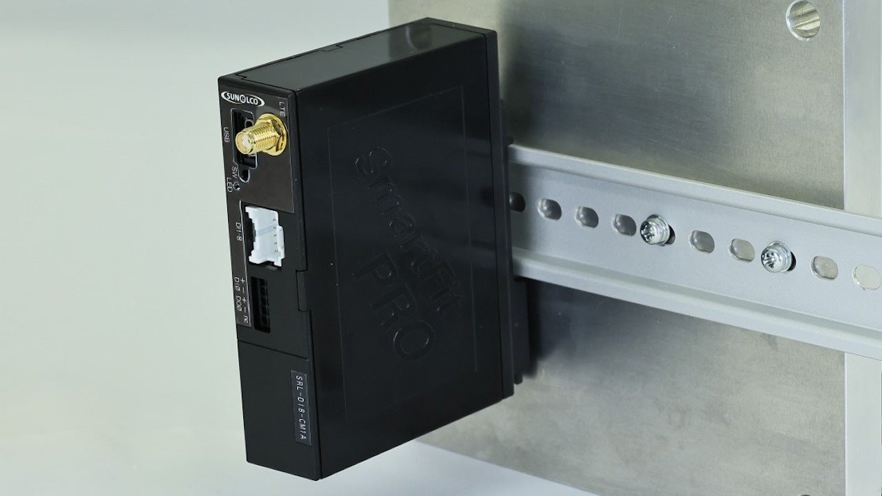 今回取り扱いを開始する「SmartFitPRO」シリーズはセンサー・コントローラーメーカーの旭光電機株式会社が開発した、接点入出力のインタフェースを備えたIoTゲートウェイです。通信は低消費電力が特徴のセルラー通信規格LTE-Mに対応します。長辺がわずか10cmと小型で、背面のねじ穴、もしくは付属のDINレールマウントにより制御盤等に設置できます。