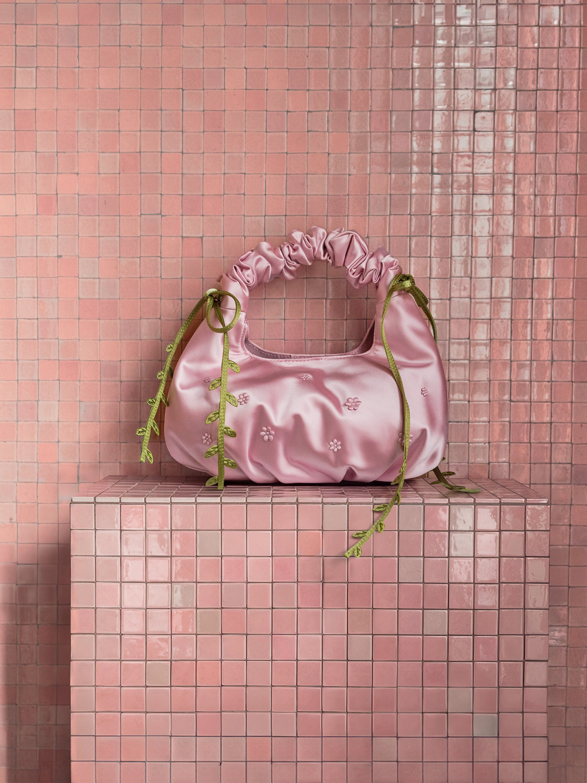 春の訪れを軽やかに表現したBlossom Capsuleは、ツルを思わせるストラップディテールや、軽やかなバケットバッグ、ショルダーバッグ、花びらの動きを想起させる立体的なフットウェアなど、自然の美しさを繊細に映し出しています。ピンクやグリーンをキーカラーに、みずみずしくやわらかな色合いで展開され、フラワーモチーフの表情をより一層引き立てます。ローズやチューリップ、愛らしいベアモチーフのフローラルチャームも揃い、スタイリングにさりげないアクセントを添えます。