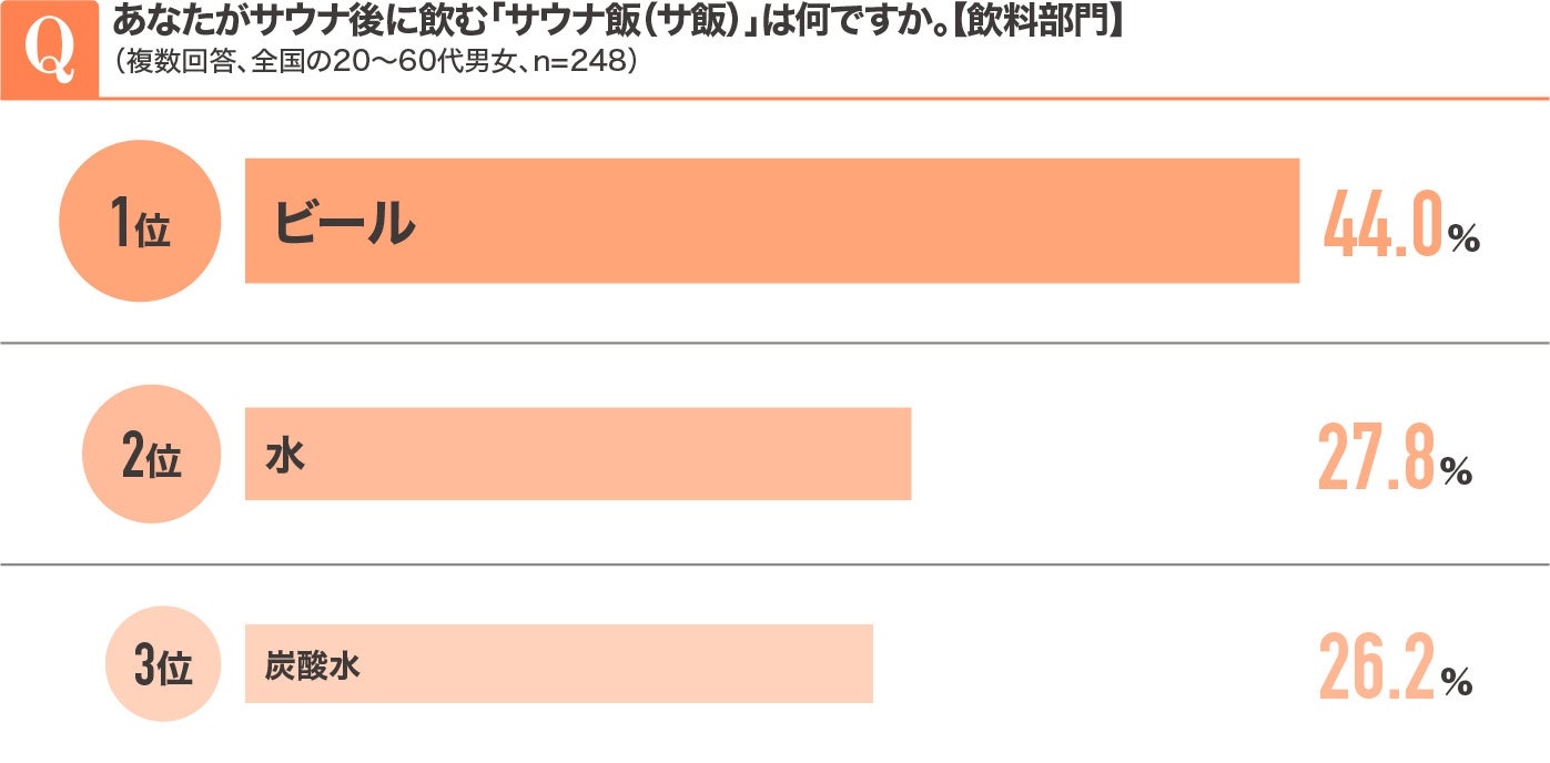 - サウナ後の食事「サ飯」ランキング1位は「アイスクリーム」!?飲料は若い世代では「コーヒー牛乳/フルーツ牛乳」、上の世代ほど「ビール」を好む対照的な結果に。