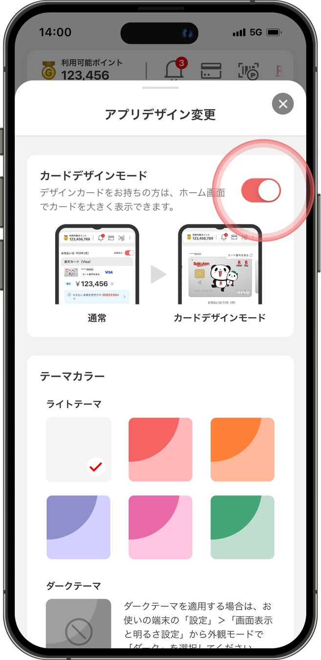 楽天カード、「楽天カードアプリ」に「カードデザインモード」を追加