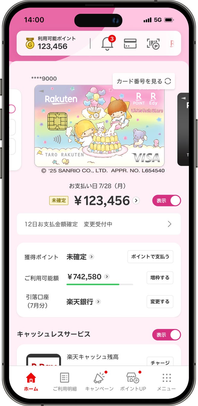 楽天カード株式会社(以下「当社」)は、楽天カード会員様向け「楽天カードアプリ」(Android/iOS)(以下「本アプリ」)において、デザインカードをお持ちの会員様を対象に、お持ちのデザインカードが本アプリ画面に大きく表示される「カードデザインモード」(以下「本機能」)の提供を本日6月10日より開始します。本機能により、アプリを開くたびにお気に入りのデザインカードをお楽しみいただけます。