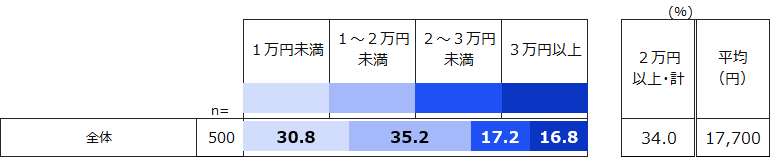 ● 購入上限価格は「1万円台」を中心に2万円未満がボリュームゾーン。