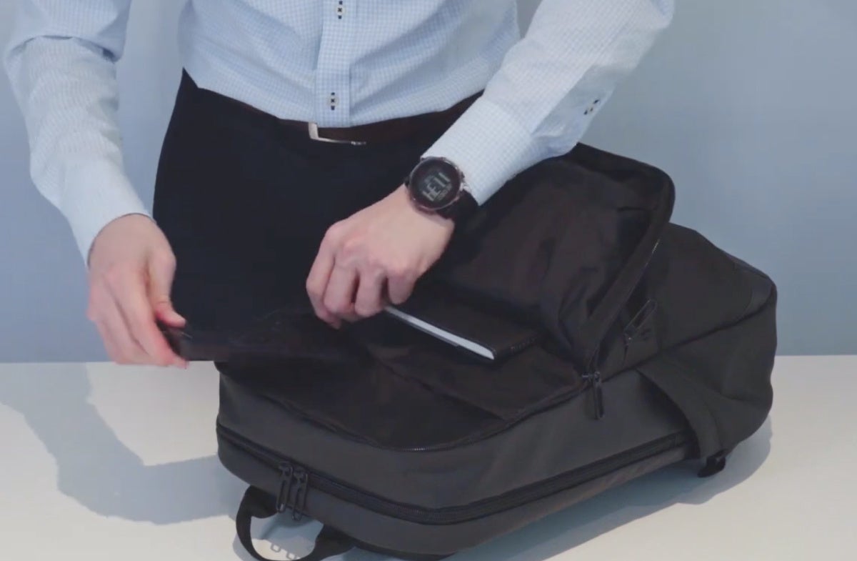 スポーツブランドのノウハウを採用し、背中の温度・湿度の上昇を抑えて、汗量を軽減してくれるビジネスバッグ