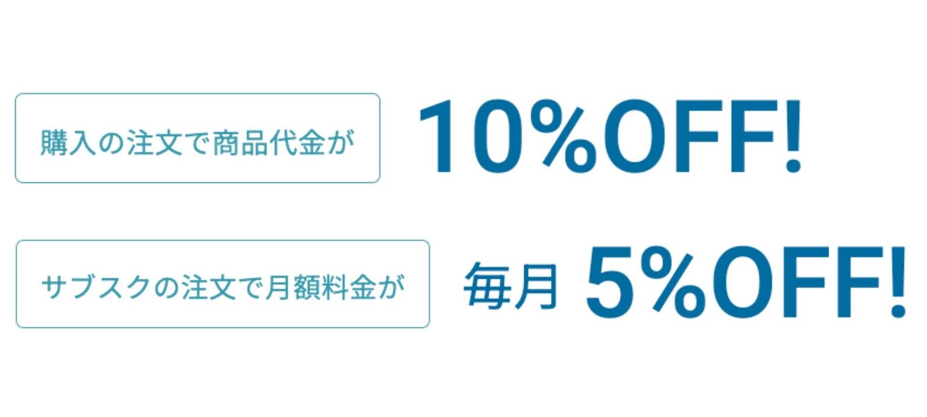 サブスクの場合:注文した月額料金の総額に対して毎月5%の割引が適用