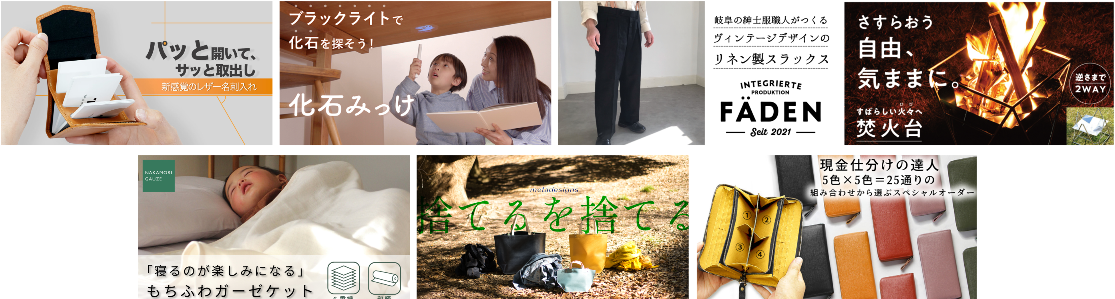 今回、西武池袋本店で、お客さまに応援購入をさらに楽しめる機会を提供しながら、日本のものづくりを支援すべく、本店舗をオープンします。本店舗では、「Makuake」で掲載している、スラックス作り50年の職人が作るヴィンテージパンツや、愛知県の金属加工職人が作ったステンレスの焚き火台など、日本各地の事業者や職人などが作るプロダクトを、作り手の顔や想い、開発背景に焦点を当てながら展示を行います。また、ゴールデンウィーク期間に本店舗をオープンすることで、より多くのお客さまに、こだわりの日本製プロダクトを実際に手に取り、作り手の想いなどにゆっくりと触れながら、応援購入を楽しんでいただくことを目指します。